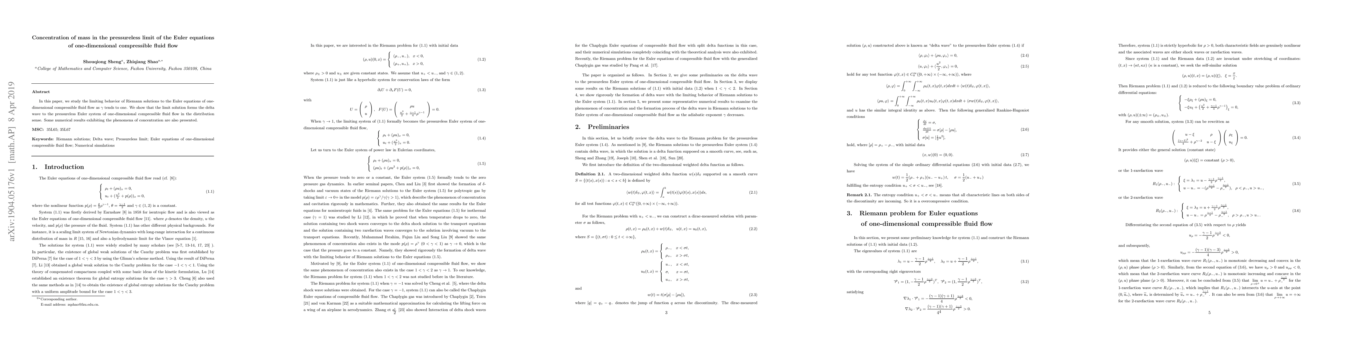 This paper investigates the behavior of Riemann solutions to the Euler equations for one-dimensional compressible fluid flow as the adiabatic index approaches one, demonstrating that the limit forms a delta wave in the pressureless Euler system. Numerical results illustrate the phenomenon of mass concentration.