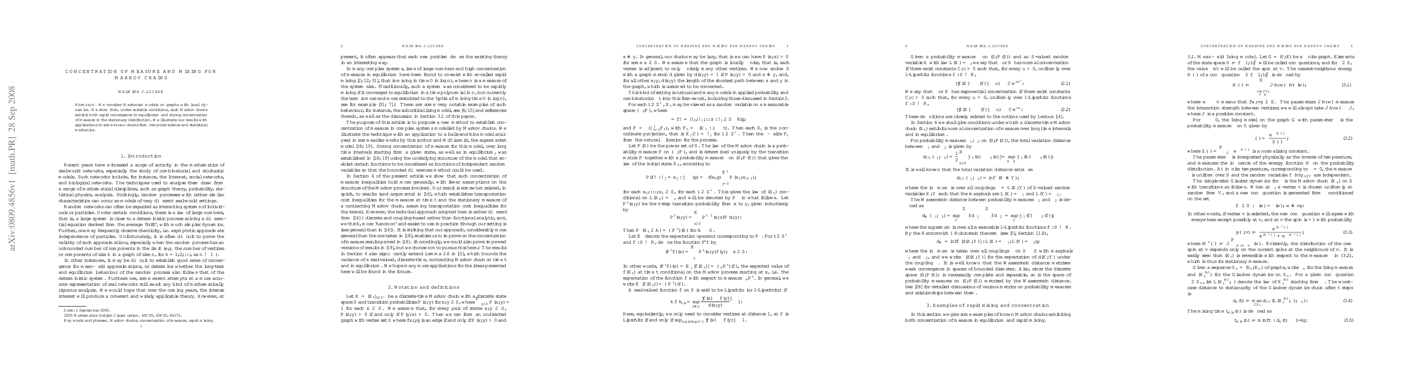 This paper demonstrates that Markov chains on graphs with local dynamics rapidly converge to equilibrium and exhibit strong concentration properties under specific conditions. The findings are illustrated through applications in computer science and statistical mechanics.