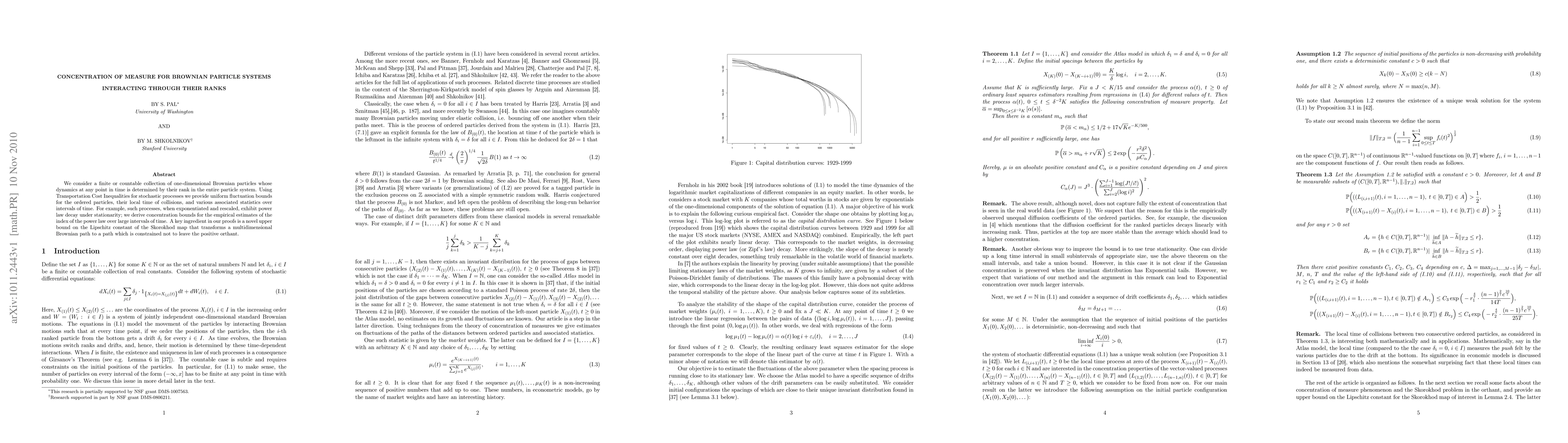 We consider a finite or countable collection of one-dimensional Brownian particles whose dynamics at any point in time is determined by their rank in the entire particle system. Using Transportation Cost Inequalities for stochastic processes we provide uniform fluctuation bounds for the ordered particles, their local time of collisions, and various associated statistics over intervals of time. For example, such processes, when exponentiated and rescaled, exhibit power law decay under stationarity; we derive concentration bounds for the empirical estimates of the index of the power law over large intervals of time. A key ingredient in our proofs is a novel upper bound on the Lipschitz constant of the Skorokhod map that transforms a multidimensional Brownian path to a path which is constrained not to leave the positive orthant.