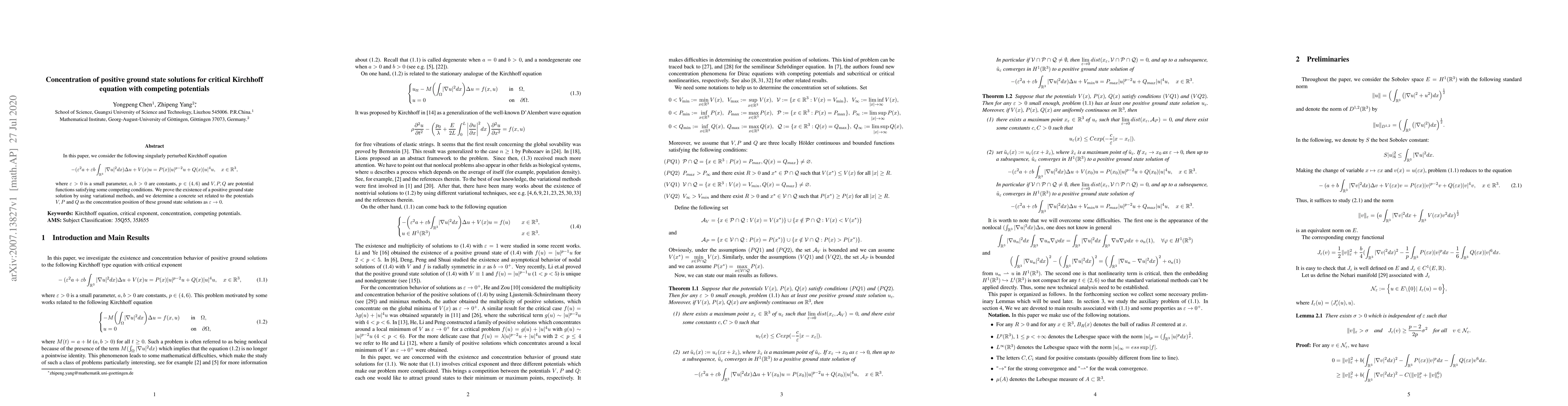 This research paper proves the existence of positive ground state solutions for a critical Kirchhoff equation with competing potentials, focusing on their concentration position as epsilon approaches 0.