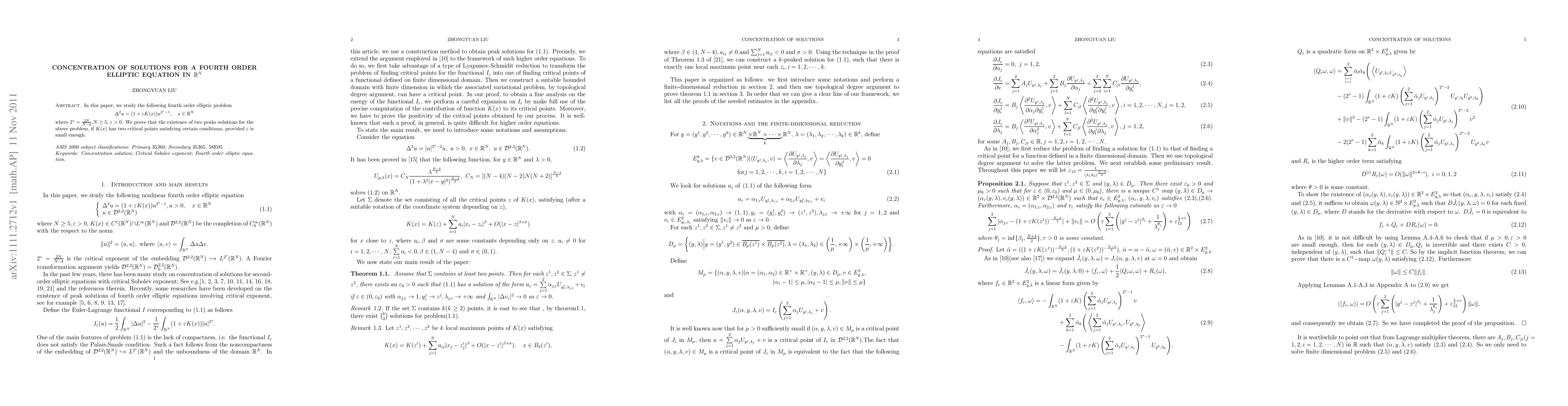 This paper investigates the existence of two peak solutions for a fourth-order elliptic equation in R^N with a specific condition on K(x) and small epsilon, proving that such solutions exist under certain conditions.