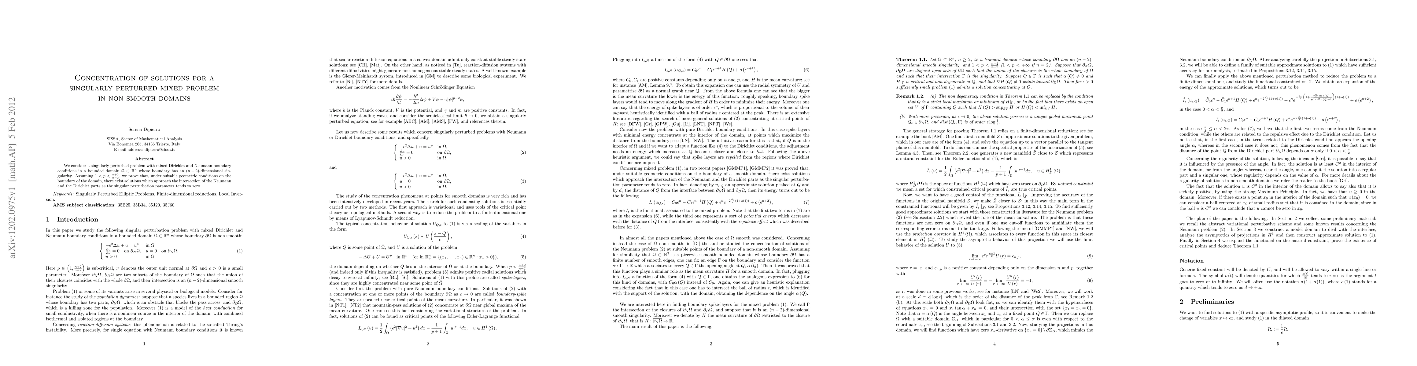 We consider a singularly perturbed problem with mixed Dirichlet and Neumann boundary conditions in a bounded domain $\Omega\subset\R^{n}$ whose boundary has an $(n-2)$-dimensional singularity. Assuming $1