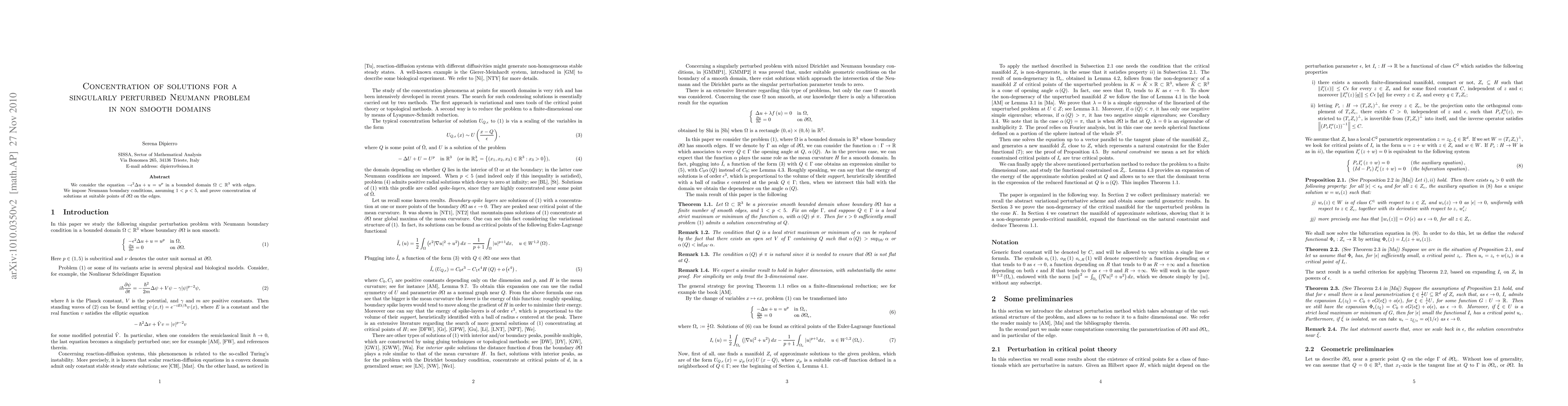 We consider the equation $-\epsilon^{2}\Delta u + u = u^ {p}$ in a bounded domain $\Omega\subset\R^{3}$ with edges. We impose Neumann boundary conditions, assuming $1
