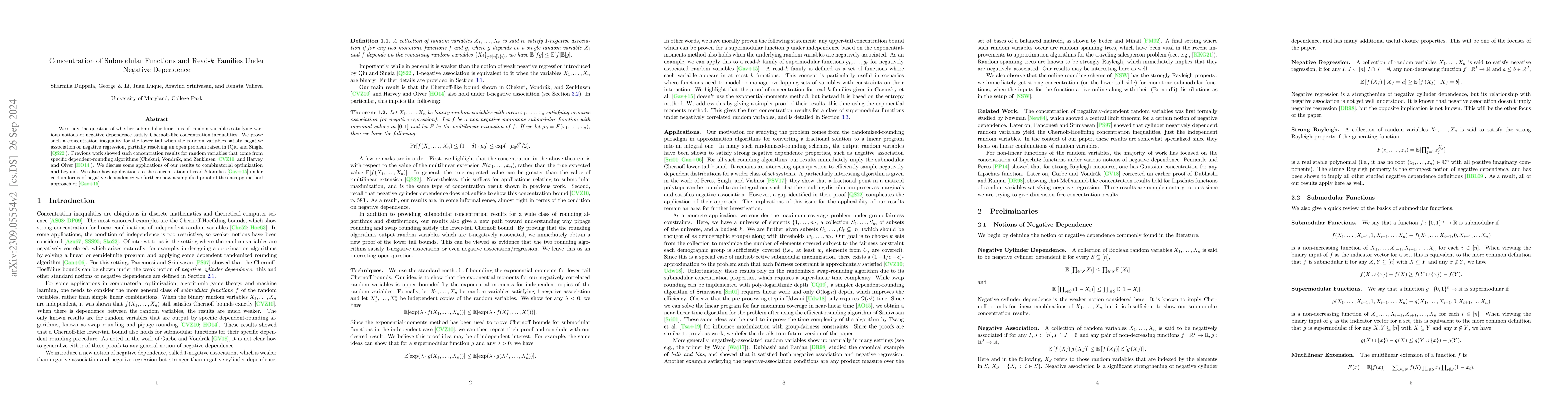 This paper proves a Chernoff-like concentration inequality for submodular functions under negative dependence, specifically for lower tails when random variables satisfy negative association or negative regression. It resolves an open problem and extends previous concentration results for dependent-rounding algorithms to a broader context.