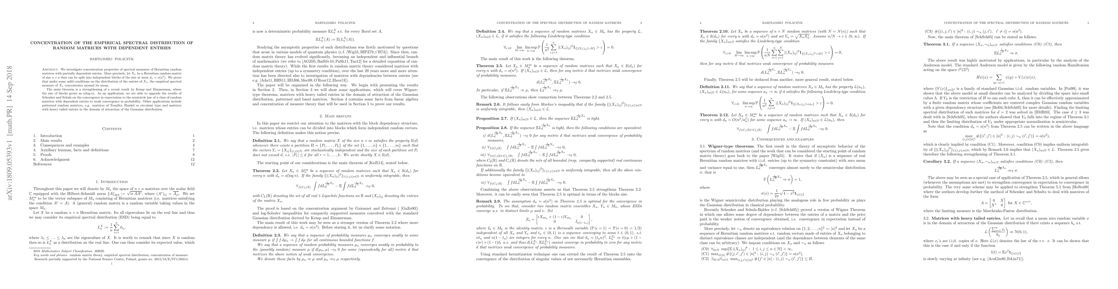 This paper investigates the concentration properties of the empirical spectral distribution of Hermitian random matrices with partially dependent entries, proving stronger concentration results compared to previous work. The study extends the convergence in expectation to weak convergence in probability for certain classes of random matrices, including patterned matrices and those with heavy-tailed entries.