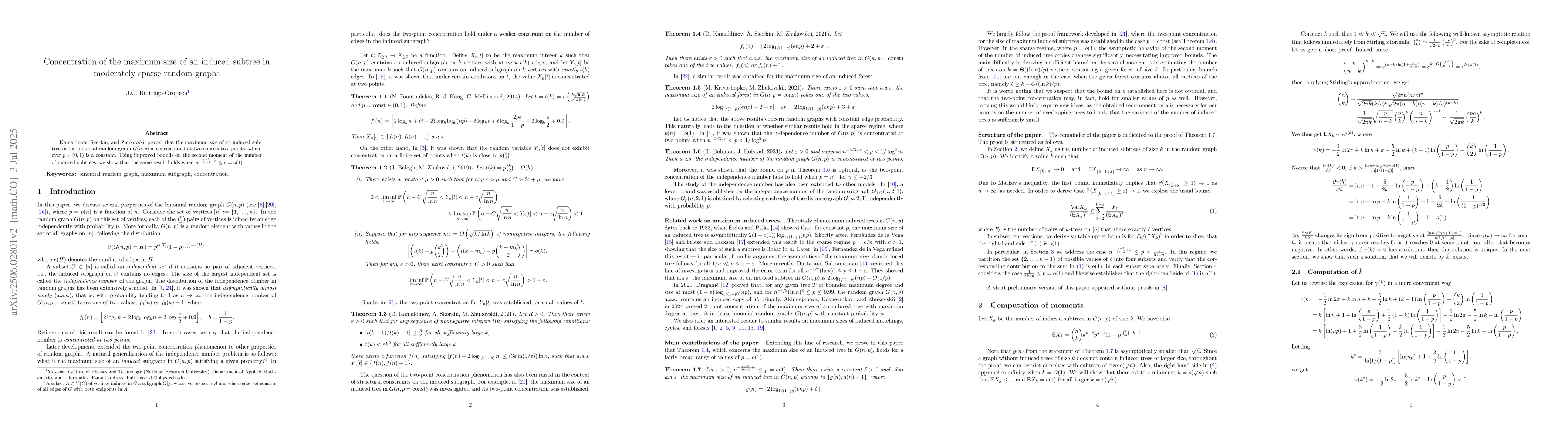The research utilizes improved bounds on the second moment of the number of induced subtrees in random graphs.