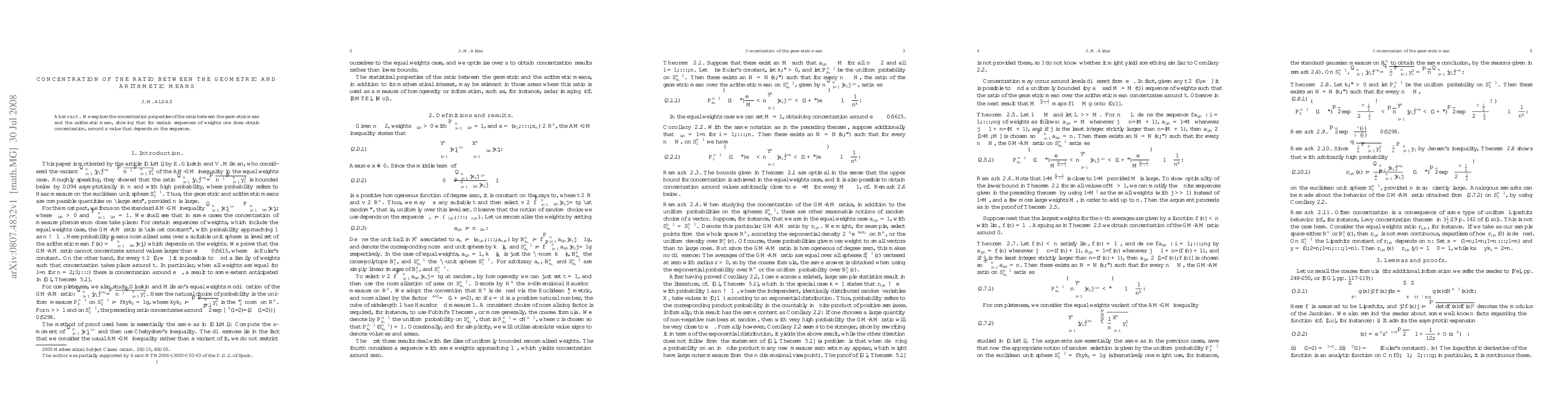 A research paper explores how certain sequences of weights lead to concentration properties in the ratio between geometric and arithmetic means, around a value that depends on the sequence.