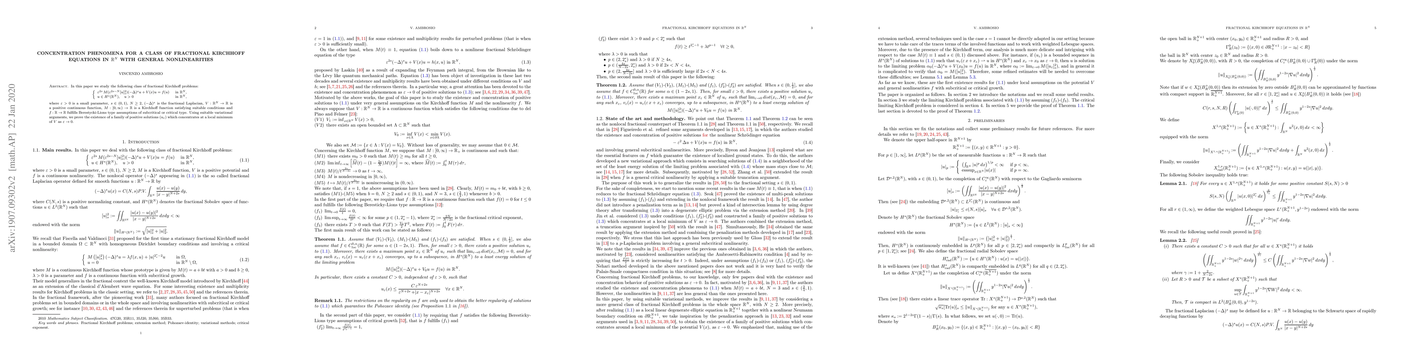 In this paper we study the following class of fractional Kirchhoff problems: \begin{equation*} \left\{ \begin{array}{ll} \varepsilon^{2s}M(\varepsilon^{2s-N}[u]^{2}_{s})(-\Delta)^{s}u + V(x) u= f(u) &\mbox{ in } \mathbb{R}^{N}, \\ u\in H^{s}(\mathbb{R}^{N}), \quad u>0 &\mbox{ in } \mathbb{R}^{N}, \end{array} \right. \end{equation*} where $\varepsilon>0$ is a small parameter, $s\in (0, 1)$, $N\geq 2$, $(-\Delta)^{s}$ is the fractional Laplacian, $V:\mathbb{R}^{N}\rightarrow \mathbb{R}$ is a positive continuous function, $M: [0, \infty)\rightarrow \mathbb{R}$ is a Kirchhoff function satisfying suitable conditions and $f:\mathbb{R}\rightarrow \mathbb{R}$ fulfills Berestycki-Lions type assumptions of subcritical or critical type. Using suitable variational arguments, we prove the existence of a family of positive solutions $(u_{\varepsilon})$ which concentrates at a local minimum of $V$ as $\varepsilon\rightarrow 0$.