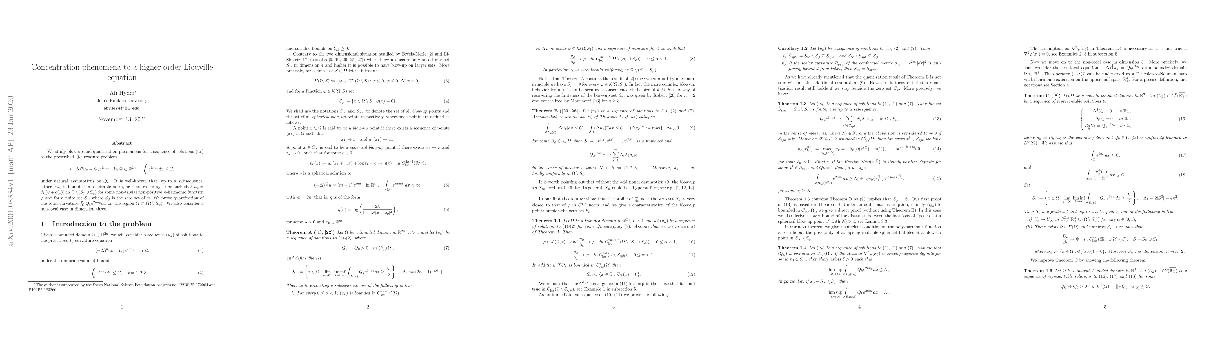 This research investigates the behavior of solutions to a prescribed Q-curvature problem, focusing on blow-up and quantization phenomena. It proves quantization of total curvature under certain conditions, and extends findings to a non-local case in three dimensions.