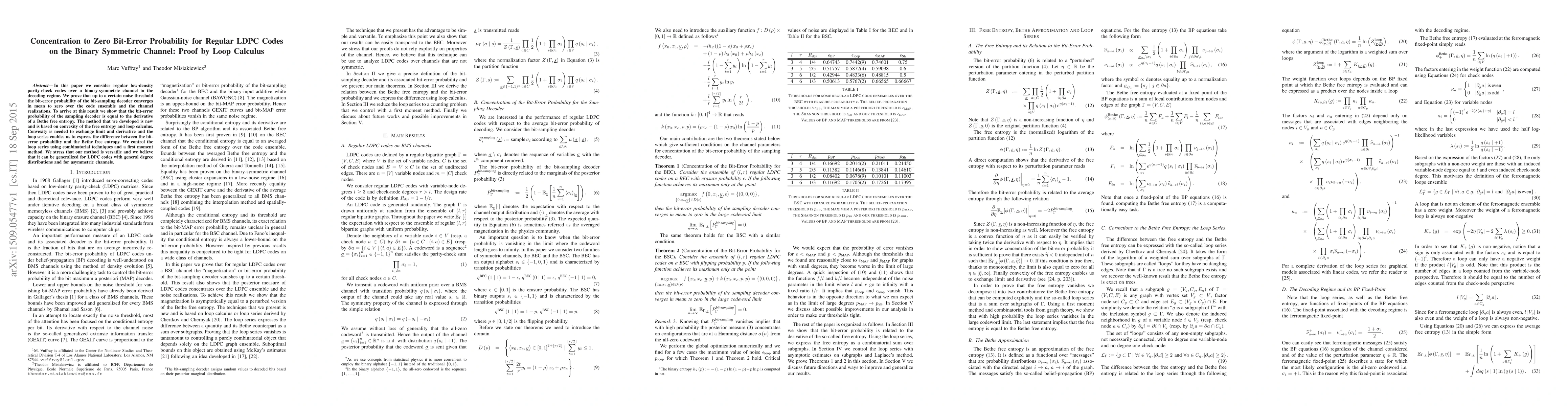 This paper proves that regular low-density parity-check (LDPC) codes achieve zero bit-error probability up to a noise threshold on the binary-symmetric channel using a novel method based on loop calculus and convexity. The authors demonstrate that the bit-error probability converges to zero by showing its equivalence to the derivative of Bethe free entropy.