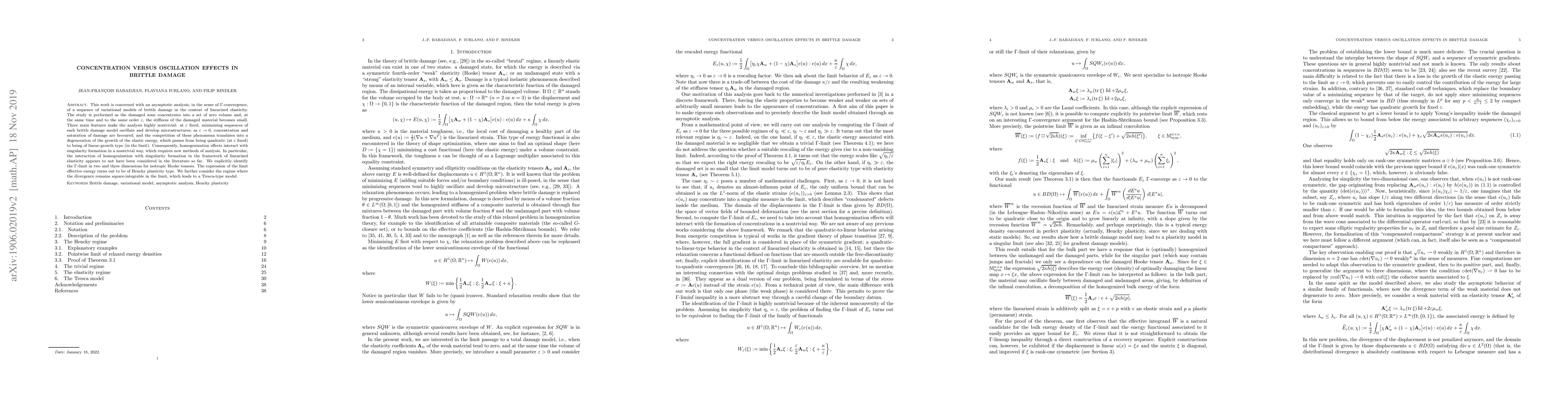 This work is concerned with an asymptotic analysis, in the sense of $\Gamma$-convergence, of a sequence of variational models of brittle damage in the context of linearized elasticity. The study is performed as the damaged zone concentrates into a set of zero volume and, at the same time and to the same order $\varepsilon$, the stiffness of the damaged material becomes small. Three main features make the analysis highly nontrivial: at $\varepsilon$ fixed, minimizing sequences of each brittle damage model oscillate and develop microstructures; as $\varepsilon\to 0$, concentration and saturation of damage are favoured; and the competition of these phenomena translates into a degeneration of the growth of the elastic energy, which passes from being quadratic (at $\varepsilon$ fixed) to being of linear-growth type (in the limit). Consequently, homogenization effects interact with singularity formation in a nontrivial way, which requires new methods of analysis. In particular, the interaction of homogenization with singularity formation in the framework of linearized elasticity appears to not have been considered in the literature so far. We explicitly identify the $\Gamma$-limit in two and three dimensions for isotropic Hooke tensors. The expression of the limit effective energy turns out to be of Hencky plasticity type. We further consider the regime where the divergence remains square-integrable in the limit, which leads to a Tresca-type model.