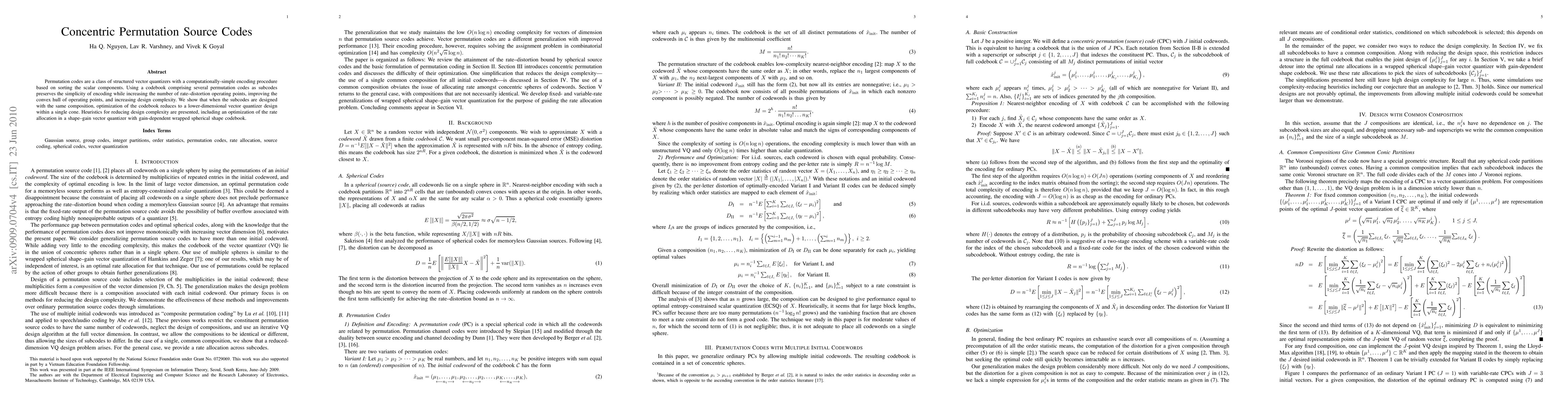 This paper explores concentric permutation source codes, which enhance vector quantizers through multiple permutation subcodes, improving rate-distortion performance. The optimization of such codebooks, when subcodes share composition, simplifies to a lower-dimensional vector quantizer design within a single cone, with heuristics provided to manage increased design complexity.