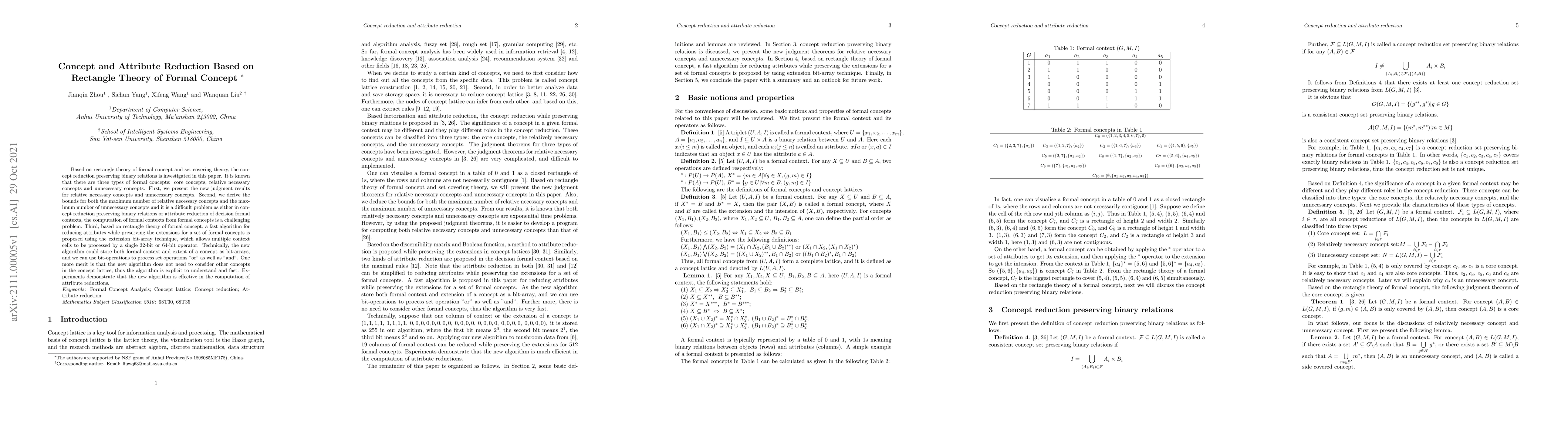 Based on rectangle theory of formal concept and set covering theory, the concept reduction preserving binary relations is investigated in this paper. It is known that there are three types of formal concepts: core concepts, relative necessary concepts and unnecessary concepts. First, we present the new judgment results for relative necessary concepts and unnecessary concepts. Second, we derive the bounds for both the maximum number of relative necessary concepts and the maximum number of unnecessary concepts and it is a difficult problem as either in concept reduction preserving binary relations or attribute reduction of decision formal contexts, the computation of formal contexts from formal concepts is a challenging problem. Third, based on rectangle theory of formal concept, a fast algorithm for reducing attributes while preserving the extensions for a set of formal concepts is proposed using the extension bit-array technique, which allows multiple context cells to be processed by a single 32-bit or 64-bit operator. Technically, the new algorithm could store both formal context and extent of a concept as bit-arrays, and we can use bit-operations to process set operations "or" as well as "and". One more merit is that the new algorithm does not need to consider other concepts in the concept lattice, thus the algorithm is explicit to understand and fast. Experiments demonstrate that the new algorithm is effective in the computation of attribute reductions.