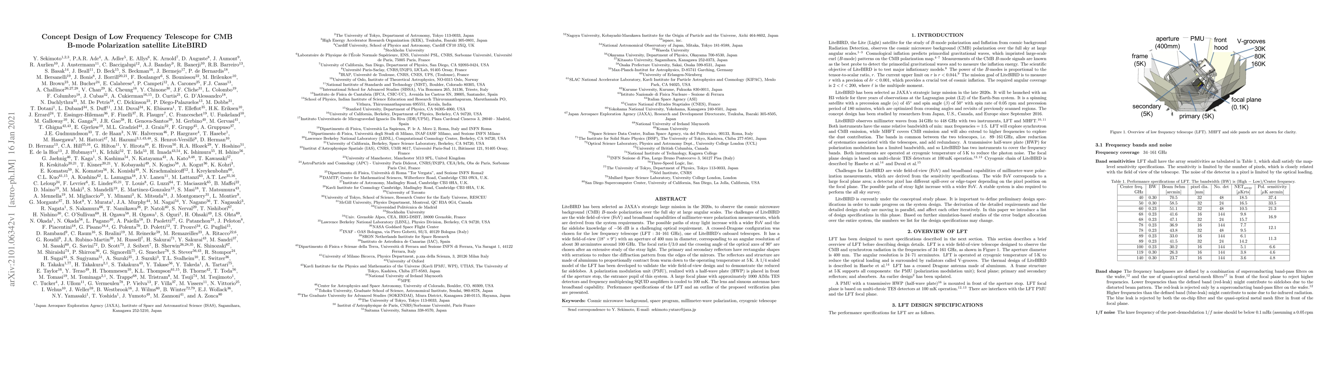 LiteBIRD's low frequency telescope (LFT) employs a crossed-Dragone configuration to achieve a wide field-of-view and broadband polarization measurements for observing CMB B-modes. The LFT features a large aperture and advanced design to minimize stray light and achieve high angular resolution.