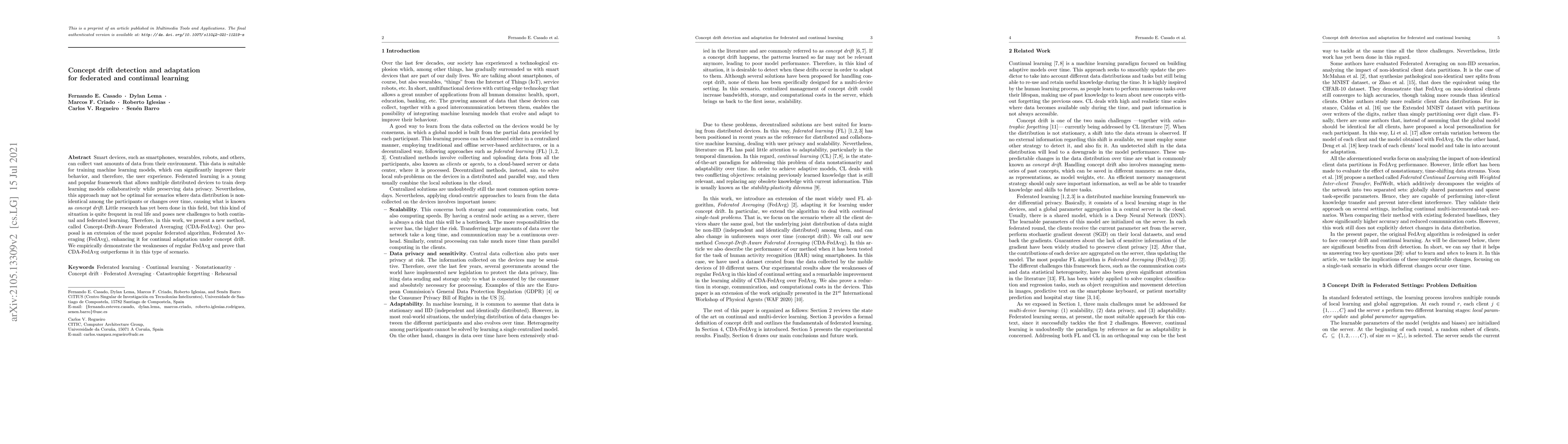 This paper introduces Concept-Drift-Aware Federated Averaging (CDA-FedAvg), an extension of the Federated Averaging algorithm designed to address concept drift in federated and continual learning scenarios. The study demonstrates that CDA-FedAvg outperforms regular FedAvg in adapting to changing data distributions.