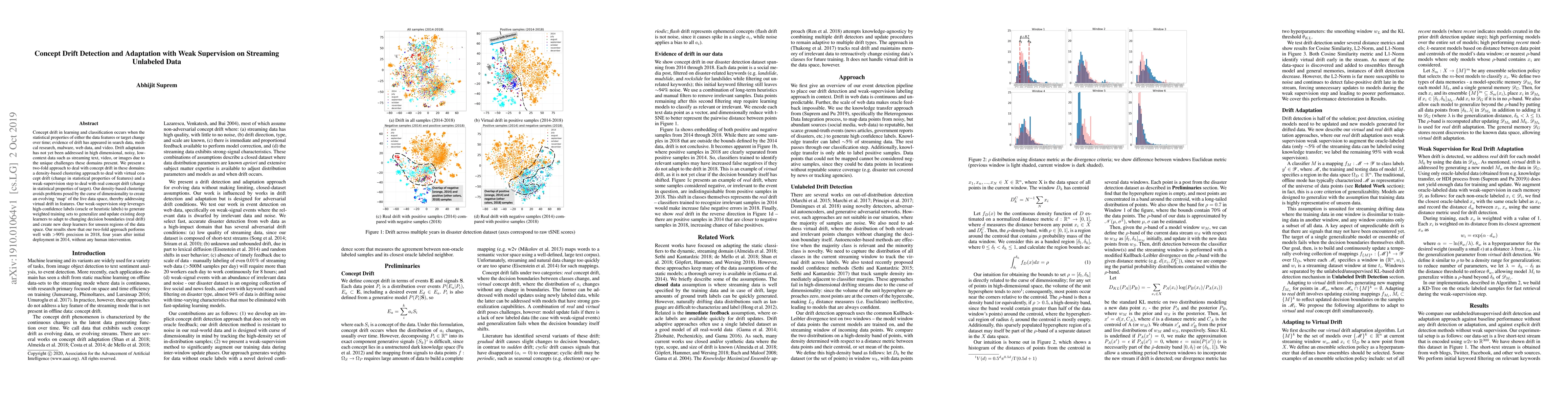 This paper proposes a dual strategy for detecting and adapting to concept drift in high-dimensional, noisy, unlabeled streaming data, using density-based clustering for virtual drift and weak supervision for real drift. The approach maintains over 90% precision four years post-deployment without human intervention.