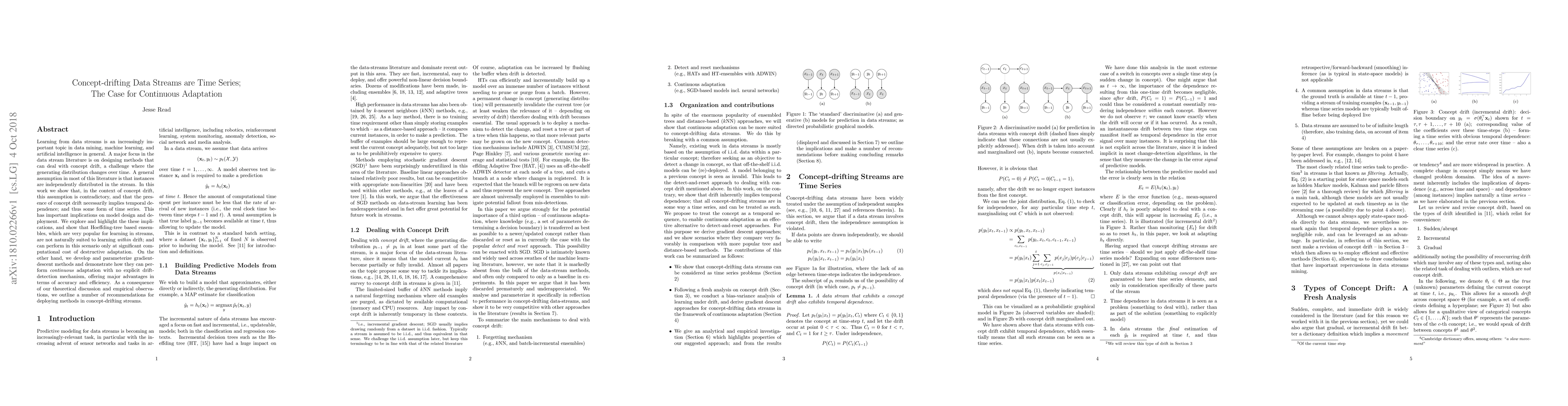 Learning from data streams is an increasingly important topic in data mining, machine learning, and artificial intelligence in general. A major focus in the data stream literature is on designing methods that can deal with concept drift, a challenge where the generating distribution changes over time. A general assumption in most of this literature is that instances are independently distributed in the stream. In this work we show that, in the context of concept drift, this assumption is contradictory, and that the presence of concept drift necessarily implies temporal dependence; and thus some form of time series. This has important implications on model design and deployment. We explore and highlight the these implications, and show that Hoeffding-tree based ensembles, which are very popular for learning in streams, are not naturally suited to learning \emph{within} drift; and can perform in this scenario only at significant computational cost of destructive adaptation. On the other hand, we develop and parameterize gradient-descent methods and demonstrate how they can perform \emph{continuous} adaptation with no explicit drift-detection mechanism, offering major advantages in terms of accuracy and efficiency. As a consequence of our theoretical discussion and empirical observations, we outline a number of recommendations for deploying methods in concept-drifting streams.