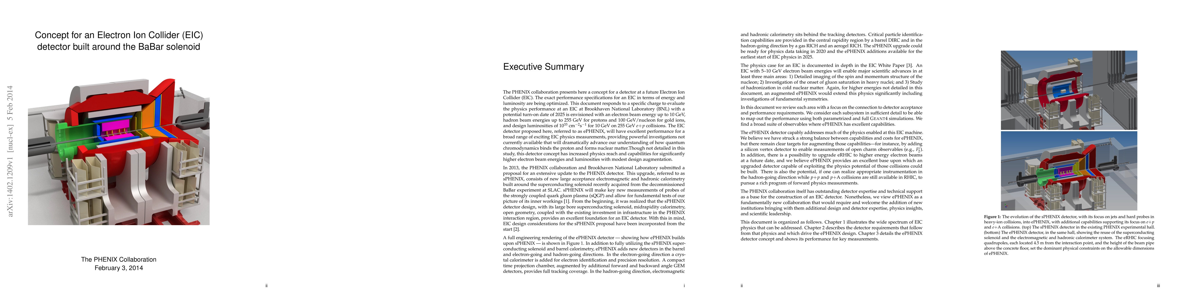 The PHENIX collaboration proposes the ePHENIX detector for an Electron Ion Collider (EIC), built around the BaBar solenoid, to enable groundbreaking studies on quantum chromodynamics and the structure of nuclear matter. This detector aims to provide unprecedented insights into the binding forces within protons and nuclei.
