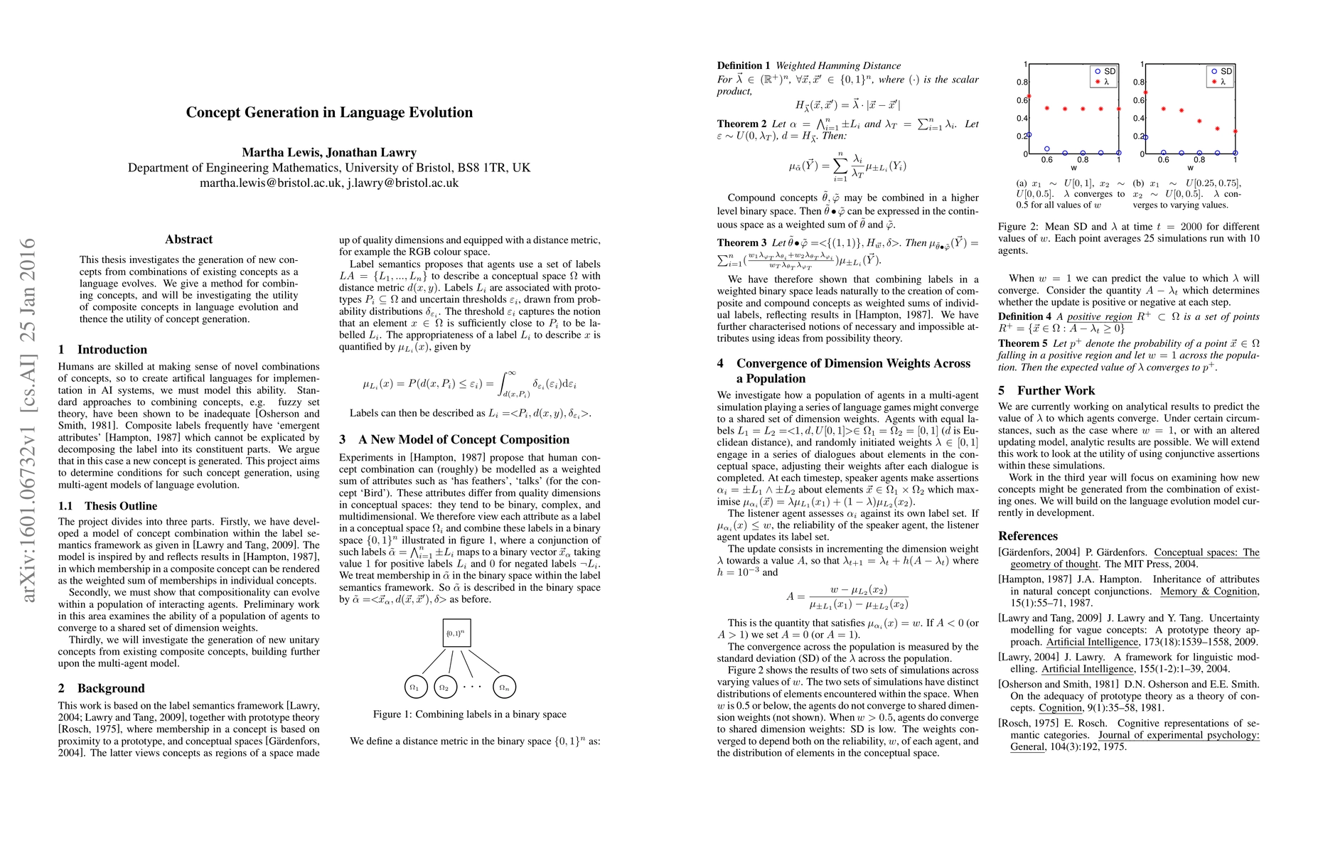 This thesis investigates the generation of new concepts from combinations of existing concepts as a language evolves. We give a method for combining concepts, and will be investigating the utility of composite concepts in language evolution and thence the utility of concept generation.