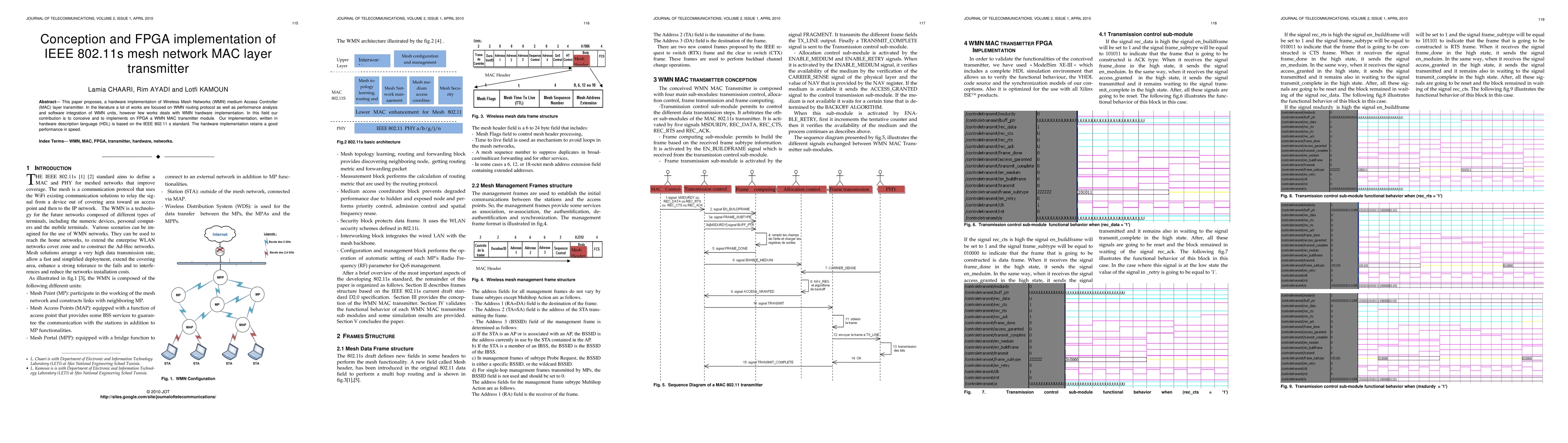 This paper presents a hardware implementation of a Wireless Mesh Network MAC layer transmitter using FPGA, based on the IEEE 802.11s standard, addressing the lack of research in WMN hardware solutions and demonstrating good performance in speed.