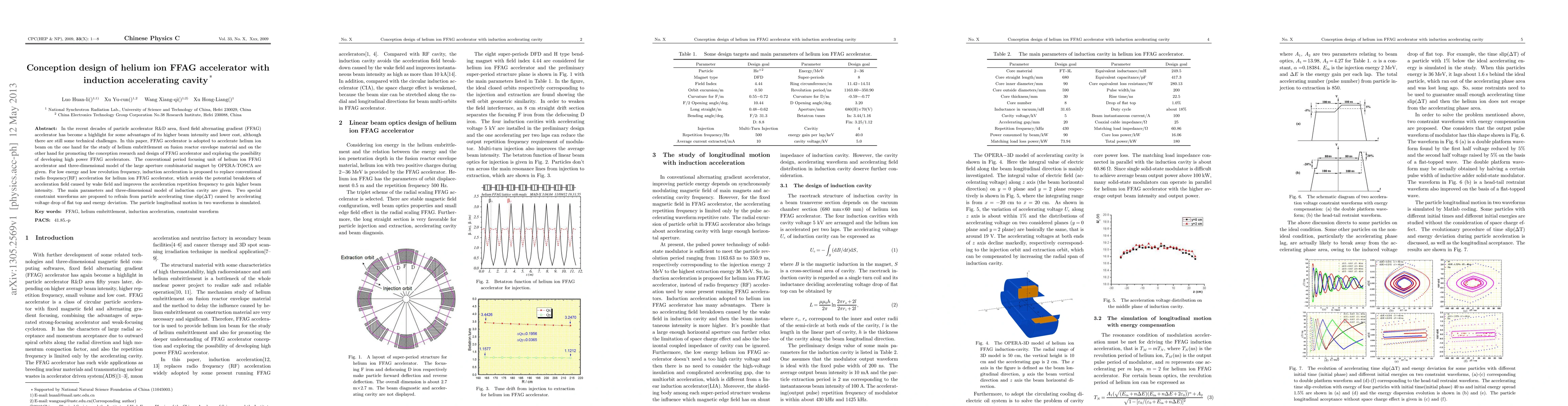 The paper presents an innovative approach to helium ion FFAG accelerator design using induction acceleration, along with detailed models and waveform constraints to address longitudinal motion challenges.
