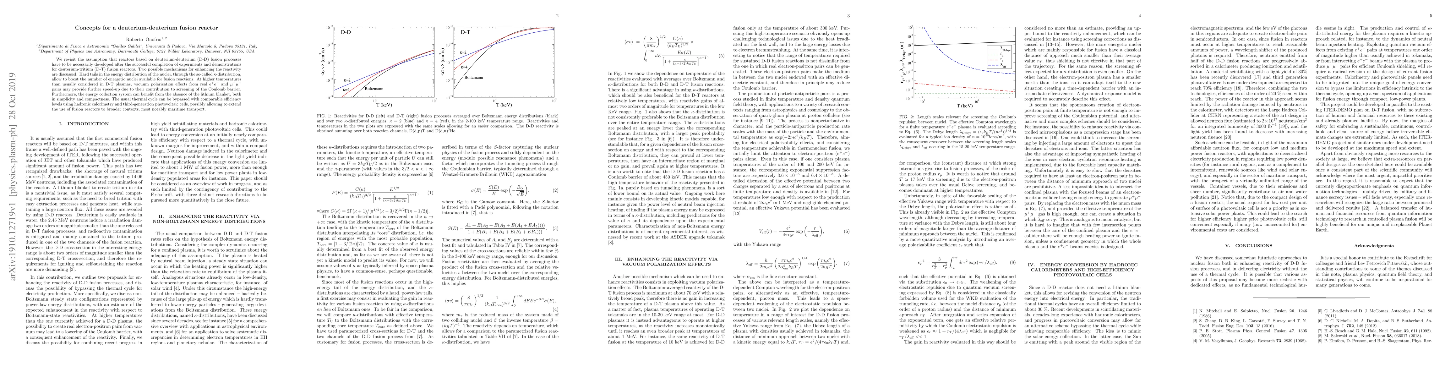 Researchers explore alternative deuterium-deuterium fusion reactor concepts that don't require expensive tritium fuel, leveraging kappa-distribution and vacuum polarization effects to boost reactivity.
