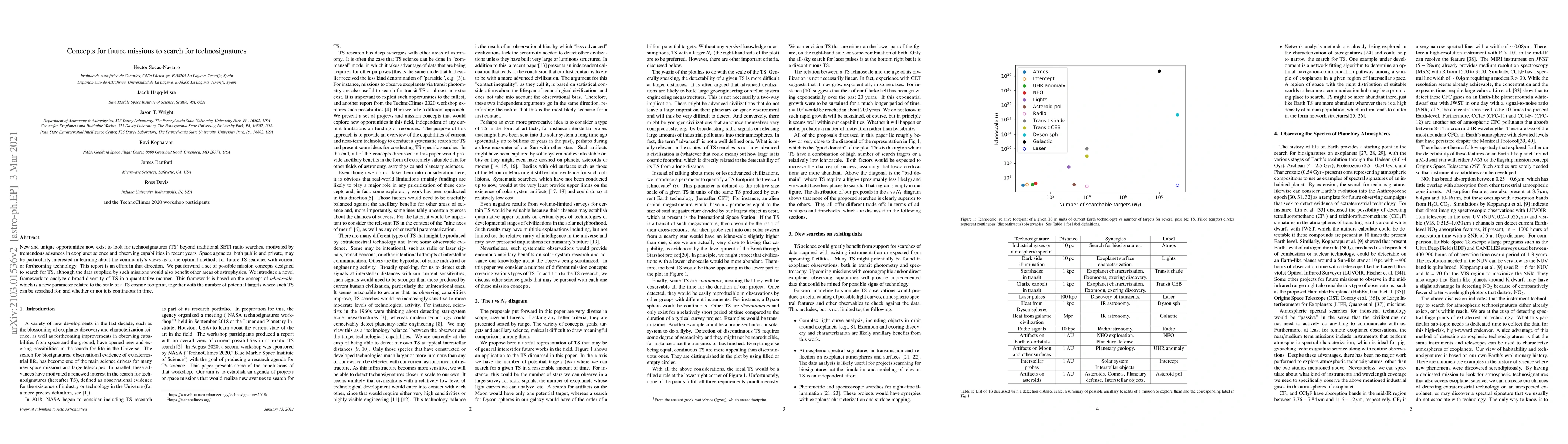 New and unique opportunities now exist to look for technosignatures (TS) beyond traditional SETI radio searches, motivated by tremendous advances in exoplanet science and observing capabilities in recent years. Space agencies, both public and private, may be particularly interested in learning about the community's views as to the optimal methods for future TS searches with current or forthcoming technology. This report is an effort in that direction. We put forward a set of possible mission concepts designed to search for TS, although the data supplied by such missions would also benefit other areas of astrophysics. We introduce a novel framework to analyze a broad diversity of TS in a quantitative manner. This framework is based on the concept of ichnoscale, which is a new parameter related to the scale of a TS cosmic footprint, together with the number of potential targets where such TS can be searched for, and whether or not it is continuous in time.