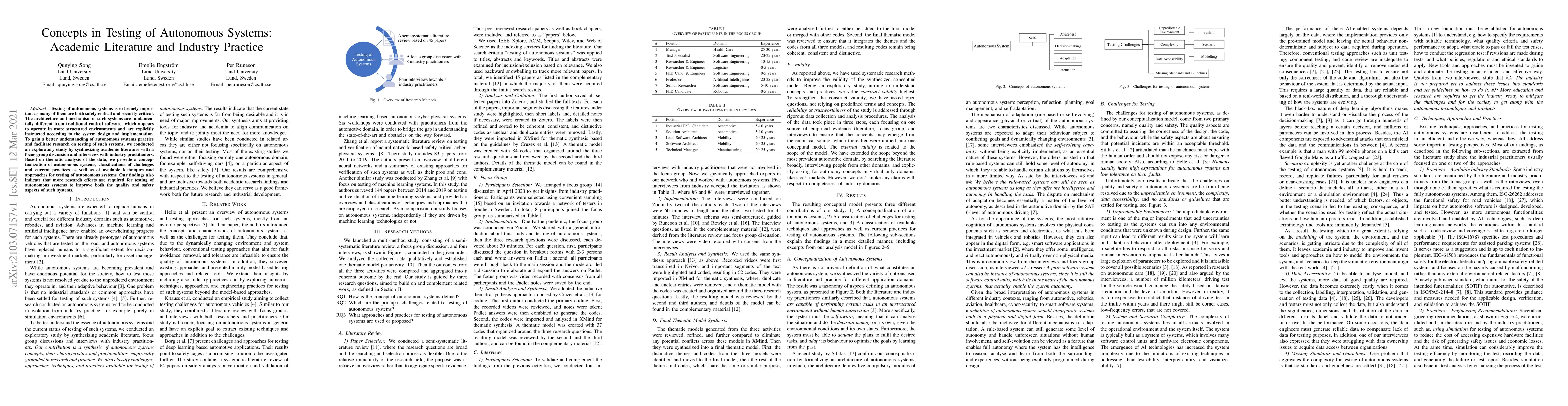 This paper explores the testing of autonomous systems by synthesizing academic literature and insights from industry practitioners, identifying unique challenges and current practices, and highlighting the need for further research to improve quality and safety. The study provides a conceptual framework for understanding and testing these complex, safety-critical systems.