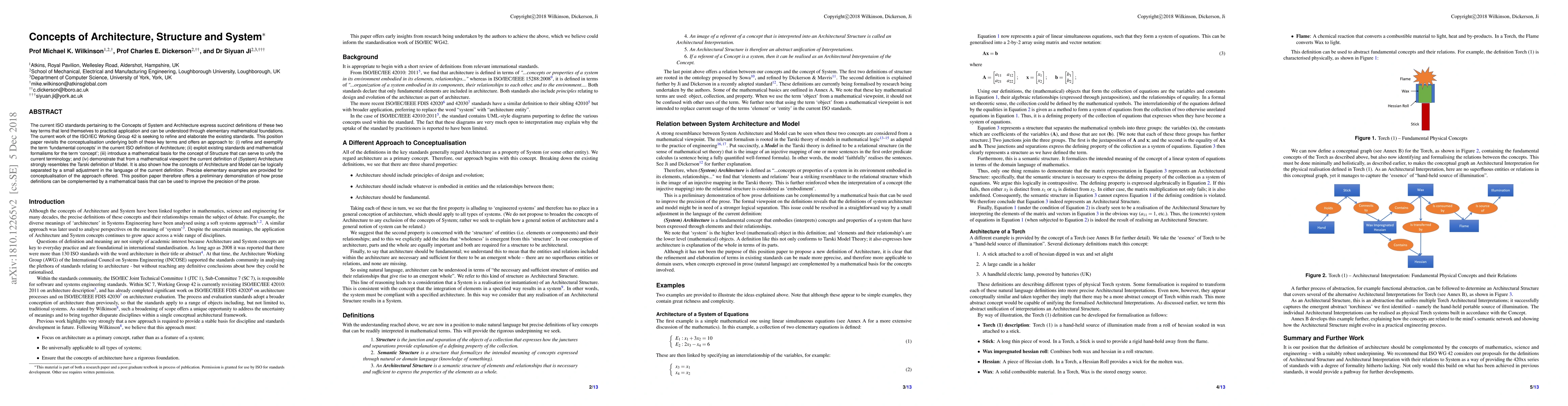 The current ISO standards pertaining to the Concepts of System and Architecture express succinct definitions of these two key terms that lend themselves to practical application and can be understood through elementary mathematical foundations. The current work of the ISO/IEC Working Group 42 is seeking to refine and elaborate the existing standards. This position paper revisits the fundamental concepts underlying both of these key terms and offers an approach to: (i) refine and exemplify the term 'fundamental concepts' in the current ISO definition of Architecture, (ii) exploit existing standards for the term 'concept', and (iii) introduce a new concept, Architectural Structure, that can serve to unify the current terminology at a fundamental level. Precise elementary examples are used in to conceptualise the approach offered.