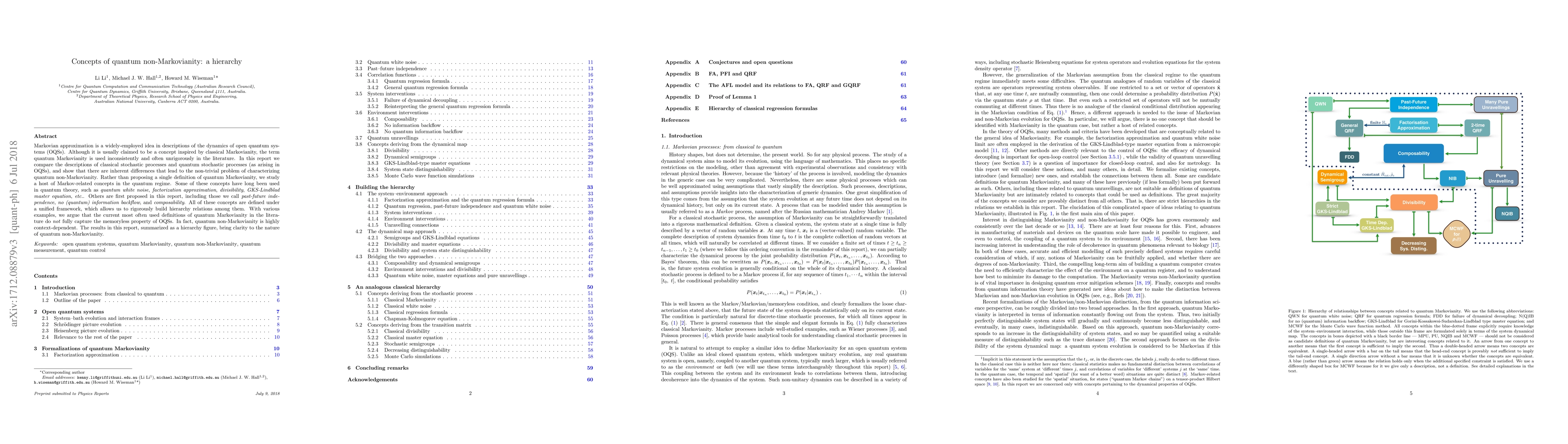 Markovian approximation is a widely-employed idea in descriptions of the dynamics of open quantum systems (OQSs). Although it is usually claimed to be a concept inspired by classical Markovianity, the term quantum Markovianity is used inconsistently and often unrigorously in the literature. In this report we compare the descriptions of classical stochastic processes and quantum stochastic processes (as arising in OQSs), and show that there are inherent differences that lead to the non-trivial problem of characterizing quantum non-Markovianity. Rather than proposing a single definition of quantum Markovianity, we study a host of Markov-related concepts in the quantum regime. Some of these concepts have long been used in quantum theory, such as quantum white noise, factorization approximation, divisibility, Lindblad master equation, etc.. Others are first proposed in this report, including those we call past-future independence, no (quantum) information backflow, and composability. All of these concepts are defined under a unified framework, which allows us to rigorously build hierarchy relations among them. With various examples, we argue that the current most often used definitions of quantum Markovianity in the literature do not fully capture the memoryless property of OQSs. In fact, quantum non-Markovianity is highly context-dependent. The results in this report, summarized as a hierarchy figure, bring clarity to the nature of quantum non-Markovianity.
