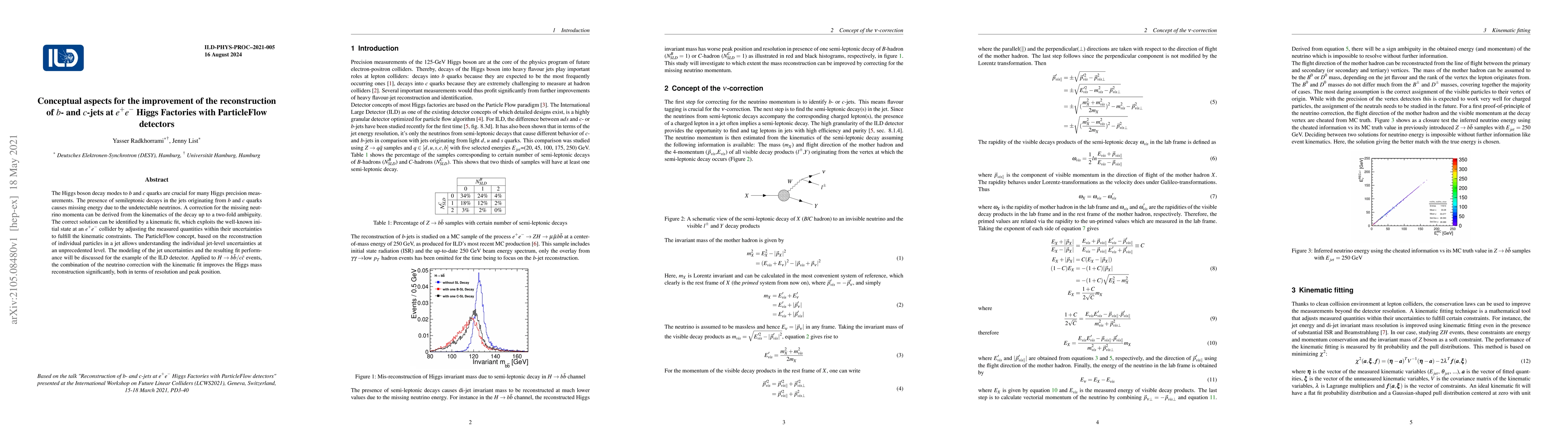 This paper discusses methods to enhance the reconstruction of $b$- and $c$-jets in Higgs boson decays at $e^{+}e^{-}$ Higgs factories using ParticleFlow detectors. It proposes a kinematic fit approach to correct for missing neutrino momenta, significantly improving the precision of Higgs mass measurements.