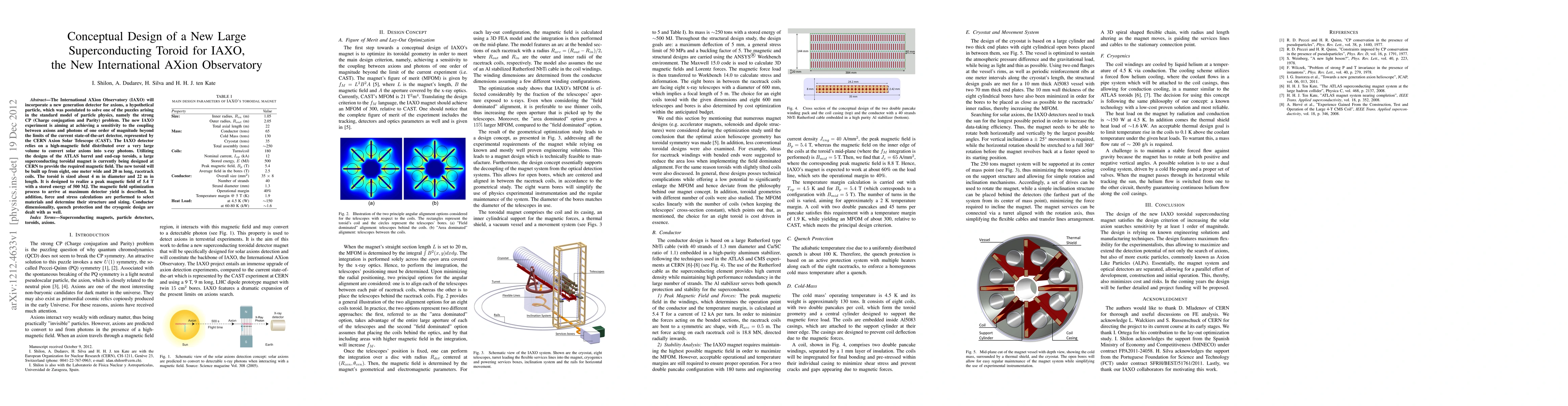 The IAXO experiment aims to detect axions with unprecedented sensitivity using a new superconducting toroidal magnet at CERN. The toroidal magnet, composed of eight racetrack coils, is designed to achieve a peak magnetic field of 5.4 T, optimizing magnetic field distribution and structural integrity through material selection and cryogenic design.