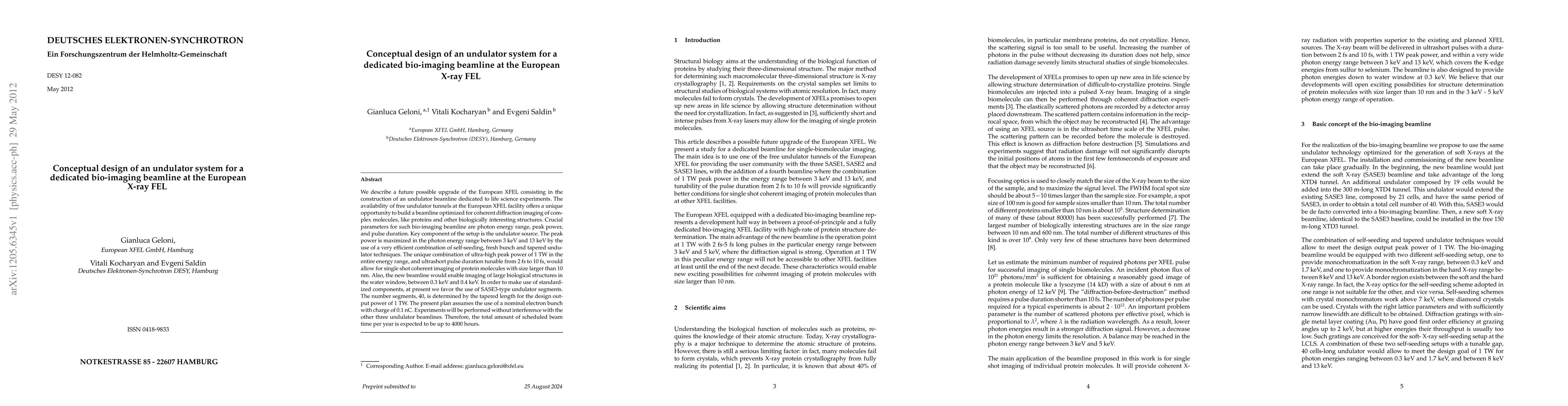Researchers propose an undulator system for a dedicated bio-imaging beamline at the European X-ray FEL, enabling single-shot coherent imaging of protein molecules with ultra-high peak power and short pulse duration.