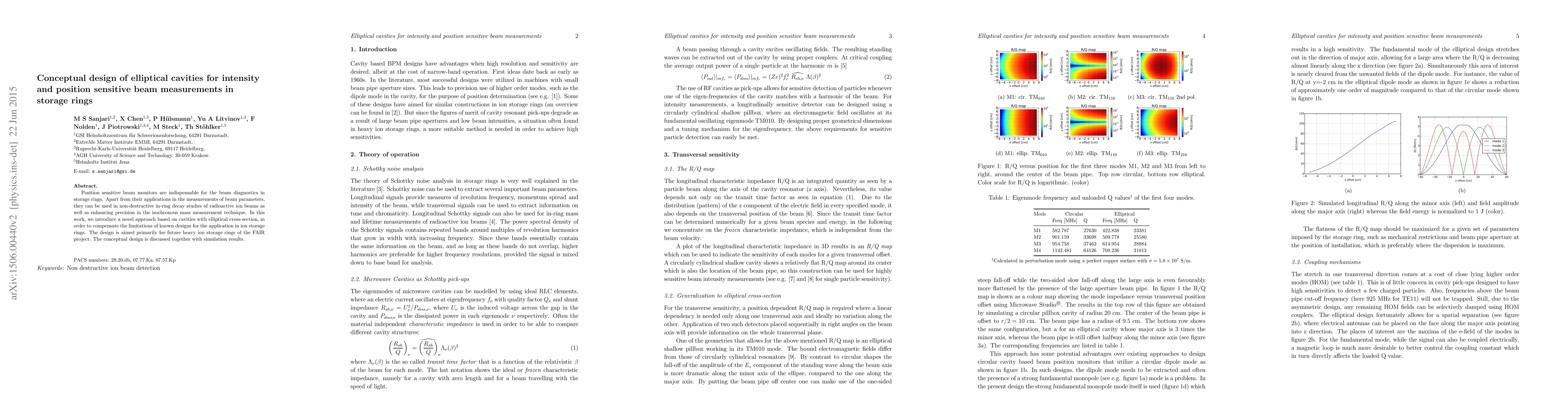 This paper presents a novel elliptical cavity design for position and intensity-sensitive beam measurements in storage rings, aiming to address current limitations in heavy ion storage rings, particularly for the FAIR project. Simulation results support the effectiveness of this design for enhancing beam diagnostics and precision mass measurements.