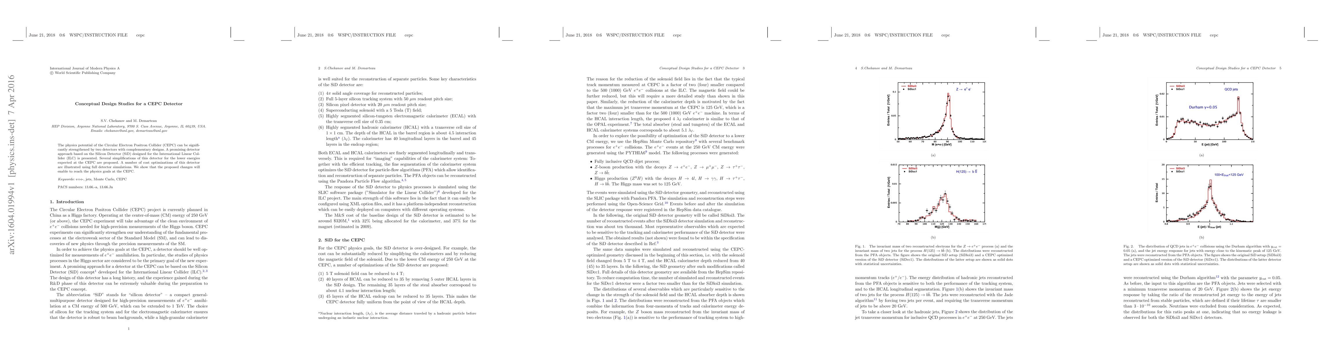 This paper presents a conceptual design for a CEPC detector based on the Silicon Detector (SiD) from the ILC, proposing simplifications and cost optimizations for lower CEPC energies, and demonstrates through simulations that these changes will meet the physics goals of the CEPC.
