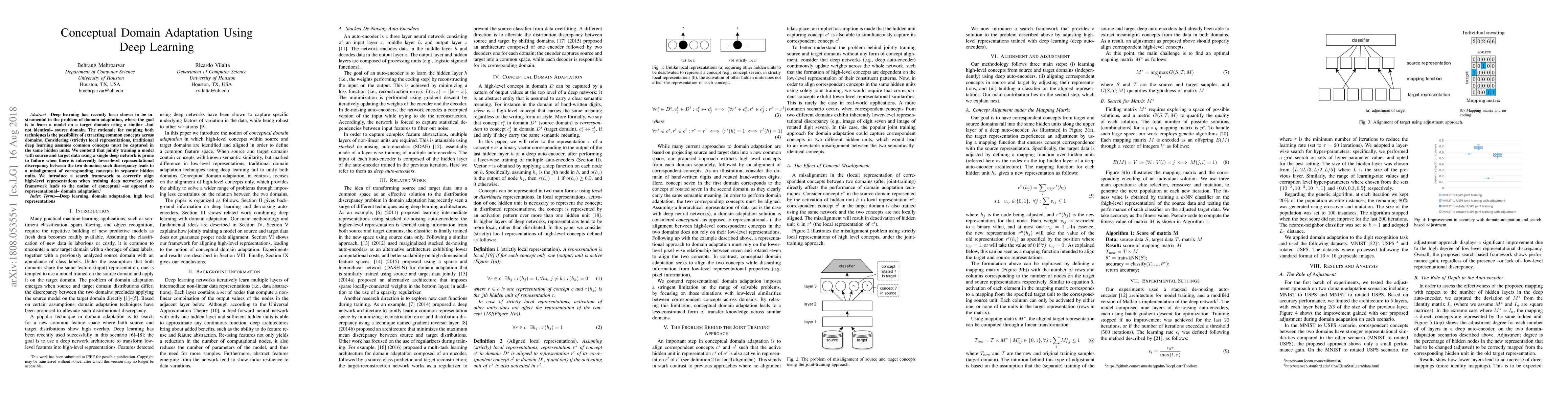 This paper proposes a conceptual domain adaptation framework using deep learning to address misalignment between source and target domains due to lower-level representational discrepancies. It introduces a method to align high-level representations instead of relying on common hidden units, achieving better domain adaptation performance.