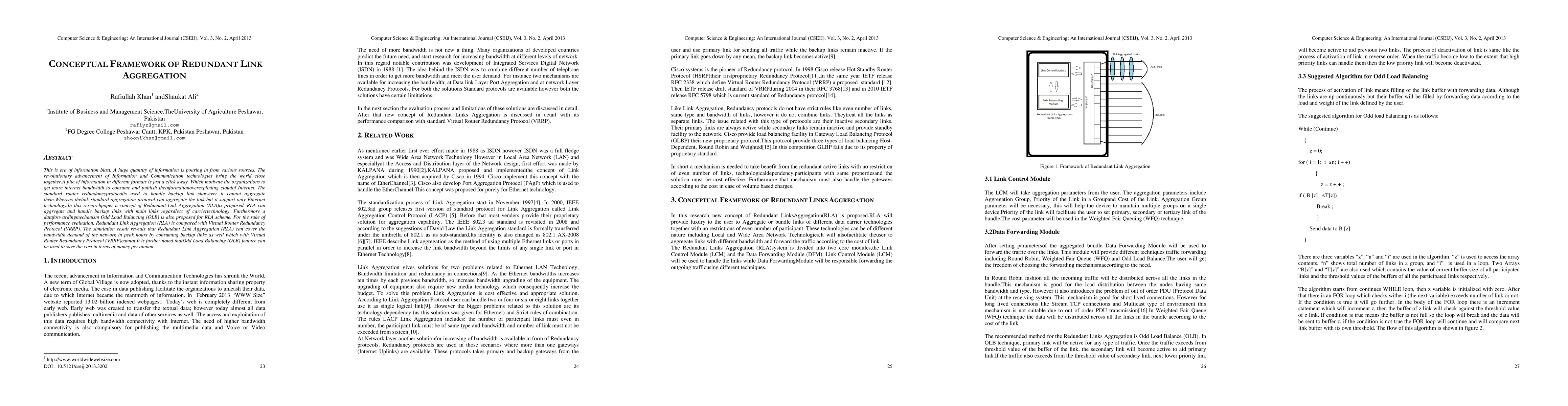 This is era of information blast. A huge quantity of information is pouring in from various sources. The revolutionary advancement of Information and Communication technologies bring the world close together. A pile of information in different formats is just a click away. Which motivate the organizations to get more internet bandwidth to consume and publish the information over exploding cloud of Internet. The standard router redundancy protocol is used to handle backup links however it cannot aggregate them. Whereas the link standard aggregation protocol can aggregate the link but it support only Ethernet technology. In this research paper a concept of Redundant Link Aggregation (RLA) is proposed. RLA can aggregate and handle backup links with main links regardless of carrier technology. Furthermore a data forwarding mechanism Odd Load Balancing (OLB) is also proposed for RLA scheme. For the sake of performance evaluation, Redundant Link Aggregation (RLA) is compared with Virtual Router Redundancy Protocol (VRRP). The simulation result reveals that Redundant Link Aggregation (RLA) can cover the bandwidth demand of the network in peak hours by consuming backup links as well which with Virtual Router Redundancy Protocol (VRRP) cannot. It is further noted that Odd Load Balancing (OLB) feature can be used to save the cost in terms of money per annum.