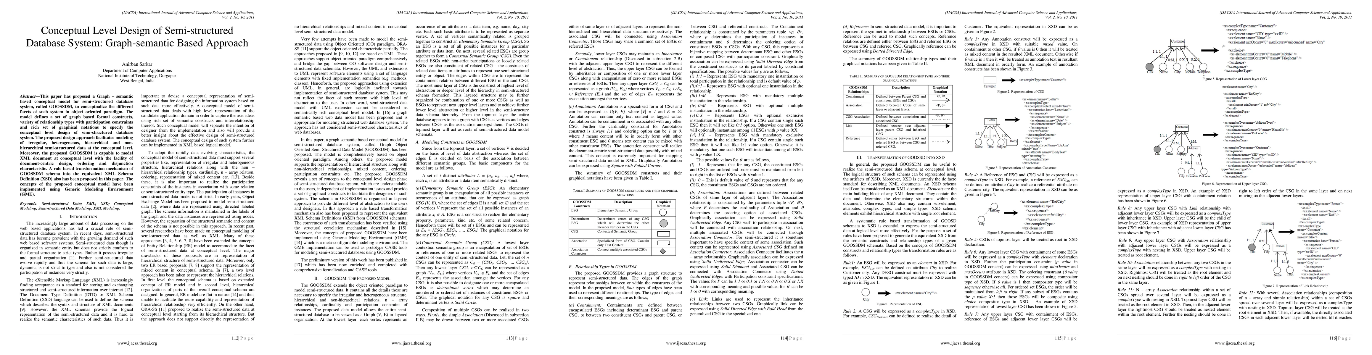 This paper introduces GOOSSDM, a graph-semantic based conceptual model for semi-structured databases, enabling the modeling of diverse data types and XML documents at the conceptual level. It also proposes a rule-based transformation mechanism to convert GOOSSDM schemas into XML Schema Definitions (XSD).