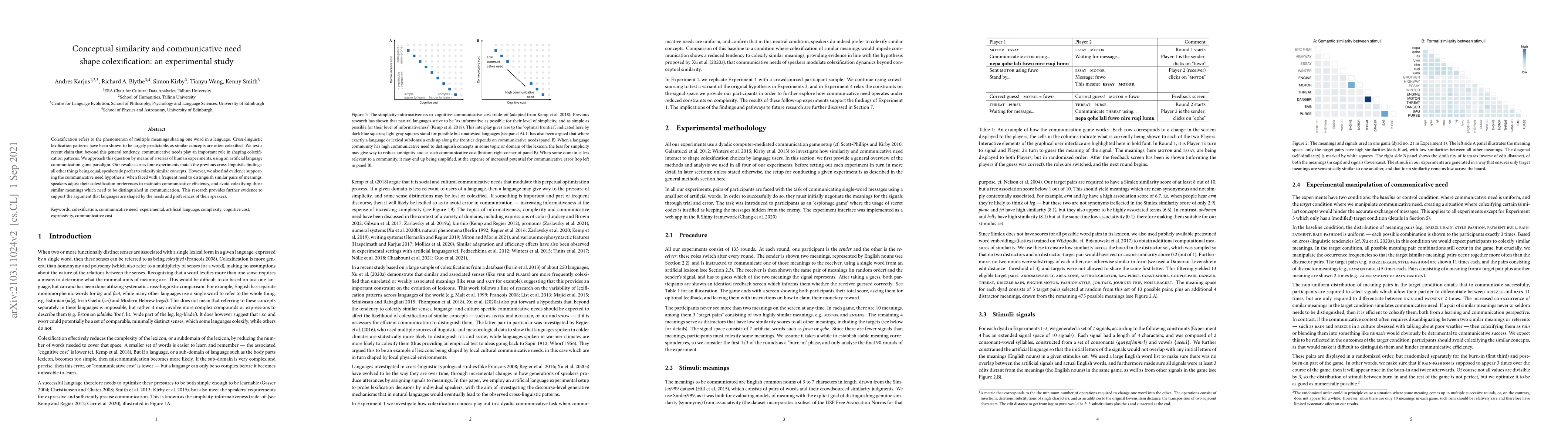 Colexification refers to the phenomenon of multiple meanings sharing one word in a language. Cross-linguistic lexification patterns have been shown to be largely predictable, as similar concepts are often colexified. We test a recent claim that, beyond this general tendency, communicative needs play an important role in shaping colexification patterns. We approach this question by means of a series of human experiments, using an artificial language communication game paradigm. Our results across four experiments match the previous cross-linguistic findings: all other things being equal, speakers do prefer to colexify similar concepts. However, we also find evidence supporting the communicative need hypothesis: when faced with a frequent need to distinguish similar pairs of meanings, speakers adjust their colexification preferences to maintain communicative efficiency, and avoid colexifying those similar meanings which need to be distinguished in communication. This research provides further evidence to support the argument that languages are shaped by the needs and preferences of their speakers.