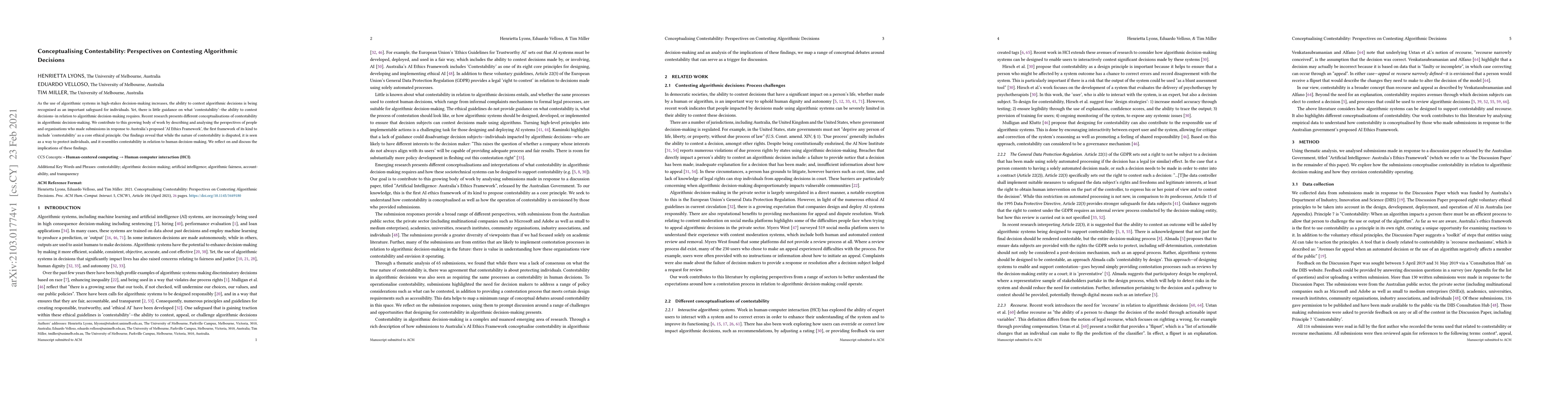 This paper explores the conceptualisation of "contestability" in algorithmic decision-making through submissions to Australia's proposed "AI Ethics Framework." It finds that while contestability is disputed, it is generally viewed as a safeguard for individuals, similar to contestability in human decision-making, highlighting its potential ethical implications.