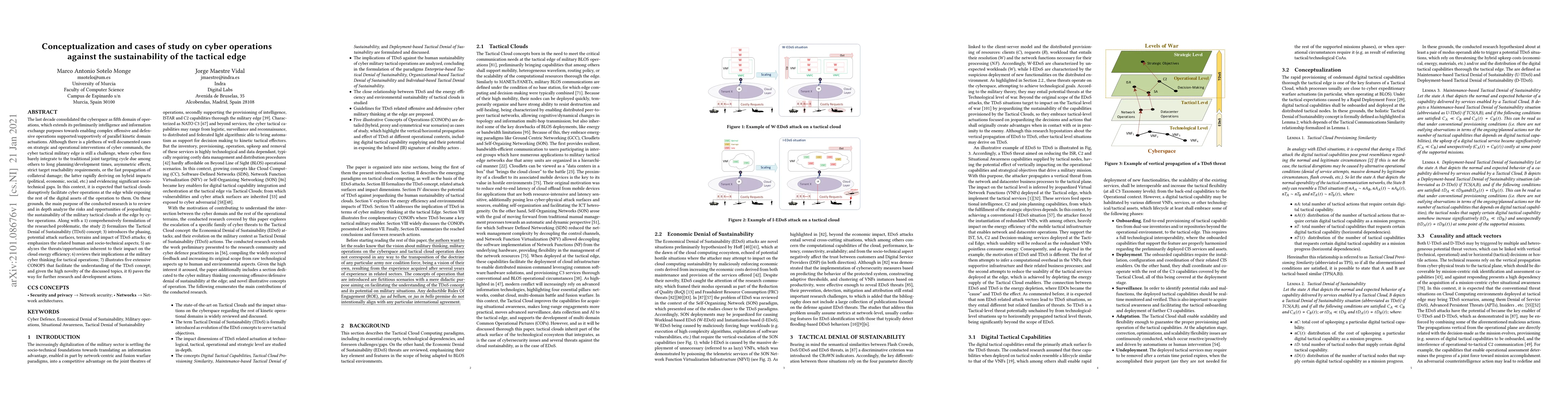 This paper explores the conceptualization of cyber operations targeting the sustainability of tactical military edges, introducing the Tactical Denial of Sustainability (TDoS) concept. It analyzes risks, opportunities, and socio-technical gaps, and provides five comprehensive operational concepts to illustrate the TDoS concept, paving the way for future research.