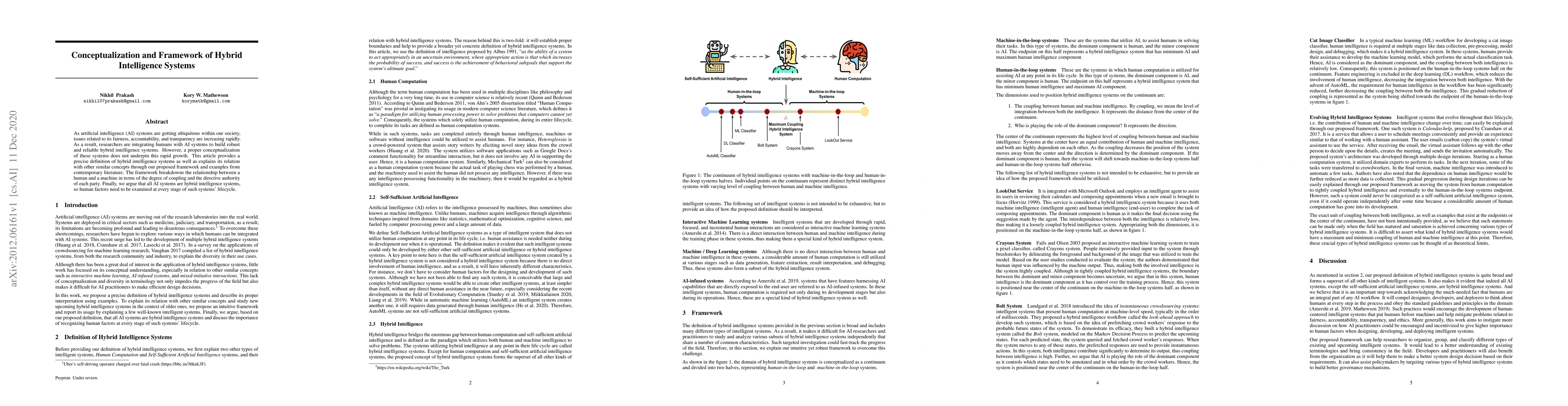 As artificial intelligence (AI) systems are getting ubiquitous within our society, issues related to its fairness, accountability, and transparency are increasing rapidly. As a result, researchers are integrating humans with AI systems to build robust and reliable hybrid intelligence systems. However, a proper conceptualization of these systems does not underpin this rapid growth. This article provides a precise definition of hybrid intelligence systems as well as explains its relation with other similar concepts through our proposed framework and examples from contemporary literature. The framework breakdowns the relationship between a human and a machine in terms of the degree of coupling and the directive authority of each party. Finally, we argue that all AI systems are hybrid intelligence systems, so human factors need to be examined at every stage of such systems' lifecycle.