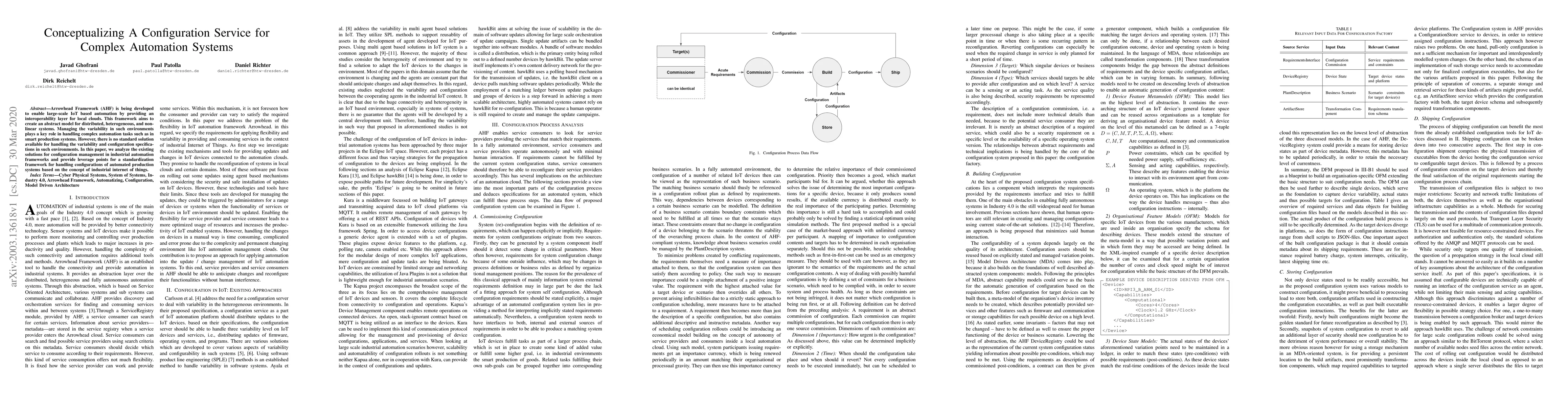 Arrowhead Framework (AHF) is being developed to enable large-scale IoT based automation by providing an interoperability layer for local clouds. This framework aims to create an abstract model for distributed, heterogeneous, and non-linear systems. Managing the variability in such environments plays a key role in handling complex automation tasks such as in smart production systems. However, there is no standard solution available for handling the variability and configuration specifications in such environments. In this paper, we analyze the existing solutions for configuration management in industrial automation frameworks and provide leverage points for a standardization framework for handling configurations of automated production systems based on the concept of industrial internet of things.