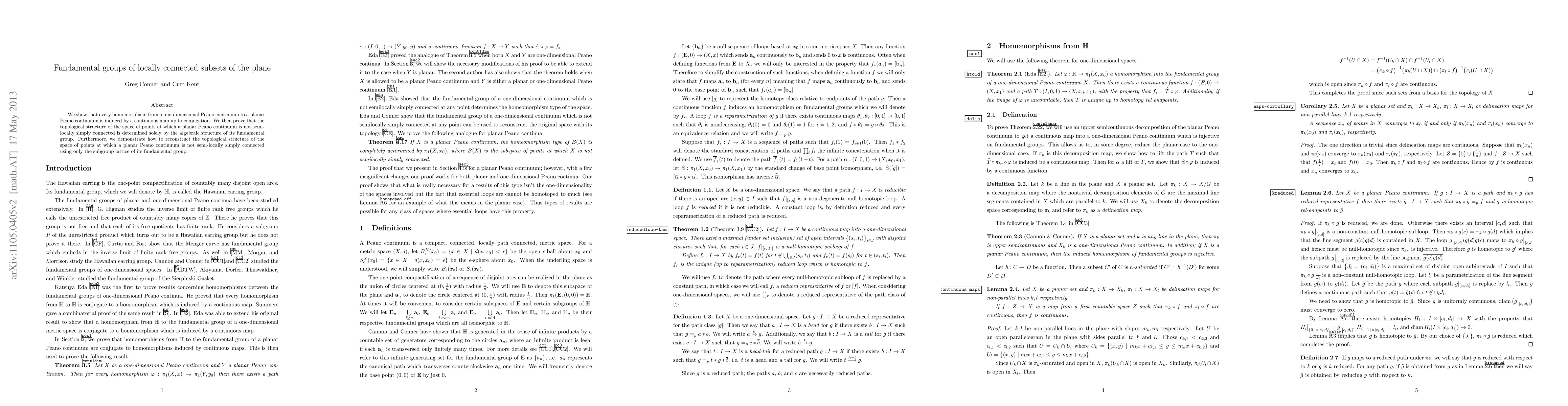 We show that every homomorphism from a one-dimensional Peano continuum to a planar Peano continuum is induced by a continuous map up to conjugation. We then prove that the topological structure of the space of points at which a planar Peano continuum is not semi-locally simply connected is determined solely by algebraic information contained in its fundamental group. Furthermore, we demonstrate how to reconstruct the topological structure of the space of points at which a planar Peano continuum is not semi-locally simply connected using only the subgroup lattice of its fundamental group.