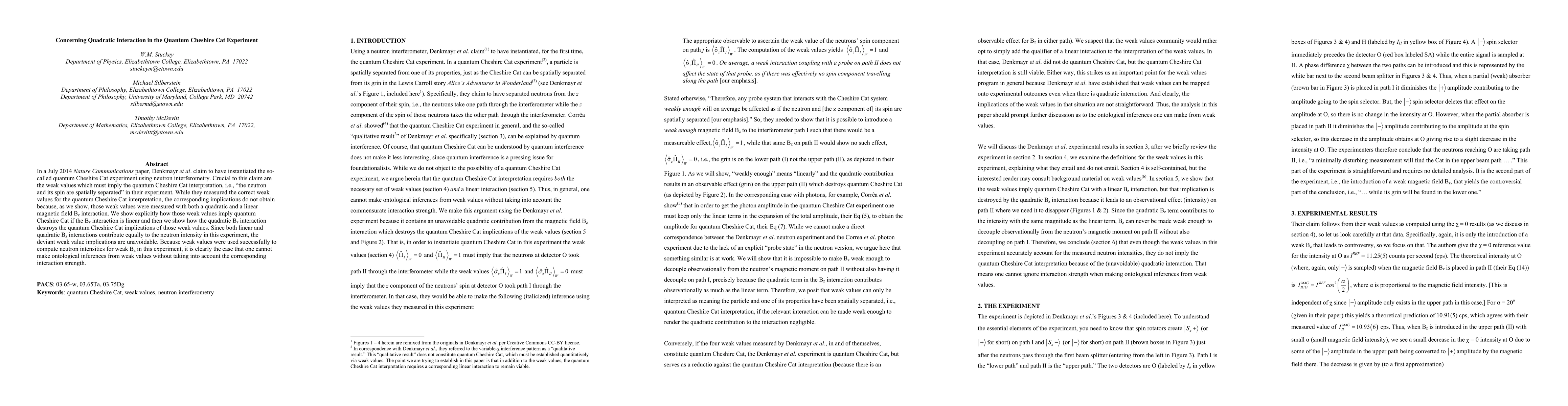 In a July 2014 Nature Communications paper, Denkmayr et al. claim to have instantiated the so-called quantum Cheshire Cat experiment using neutron interferometry. Crucial to this claim are the weak values which must imply the quantum Cheshire Cat interpretation, i.e., "the neutron and its spin are spatially separated" in their experiment. While they measured the correct weak values for the quantum Cheshire Cat interpretation, the corresponding implications do not obtain because, as we show, those weak values were measured with both a quadratic and a linear magnetic field Bz interaction. We show explicitly how those weak values imply quantum Cheshire Cat if the Bz interaction is linear and then we show how the quadratic Bz interaction destroys the quantum Cheshire Cat implications of those weak values. Since both linear and quadratic Bz interactions contribute equally to the neutron intensity in this experiment, the deviant weak value implications are unavoidable. Because weak values were used successfully to compute neutron intensities for weak Bz in this experiment, it is clearly the case that one cannot make ontological inferences from weak values without taking into account the corresponding interaction strength.