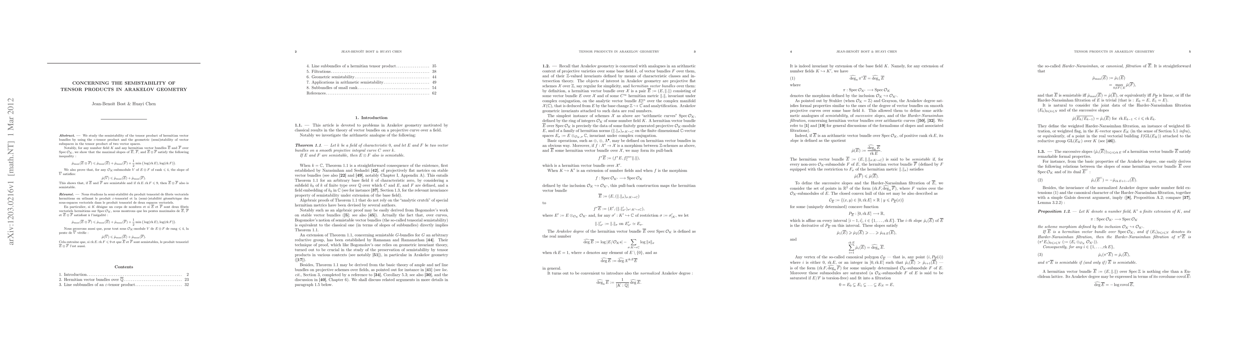 We study the semistability of the tensor product of hermitian vector bundles by using the $\varepsilon$-tensor product and the geometric (semi)stability of vector subspaces in the tensor product of two vector spaces.