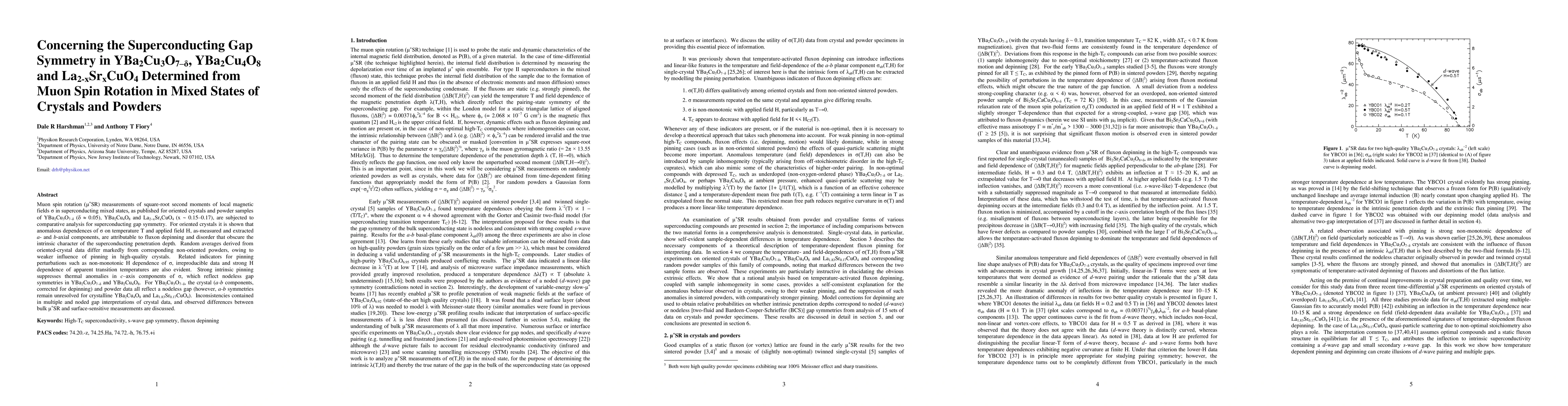 Researchers studied superconducting gap symmetry in YBa2Cu3O7-{ heta} and similar compounds using muon spin rotation measurements, finding that high-quality crystals exhibit nodeless gap symmetries, while powders show weaker pinning effects.