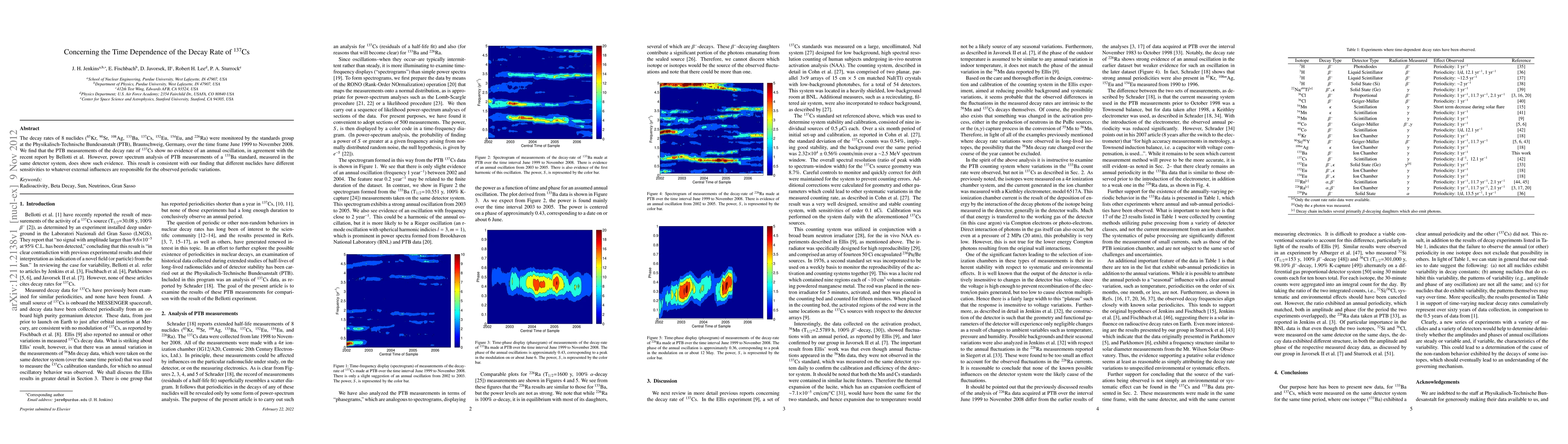 The decay rates of 8 nuclides (85Kr, 90Sr, 108Ag, 133Ba, 137Cs, 152Eu, 154Eu, and 226Ra) were monitored by the standards group at the Physikalisch-Technische Bundesanstalt (PTB), Braunschweig, Germany, over the time frame June 1999 to November 2008. We find that the PTB measurements of the decay rate of 137Cs show no evidence of an annual oscillation, in agreement with the recent report by Bellotti et al. However, power spectrum analysis of PTB measurements of a 133Ba standard, measured in the same detector system, does show such evidence. This result is consistent with our finding that different nuclides have different sensitivities to whatever external influences are responsible for the observed periodic variations.