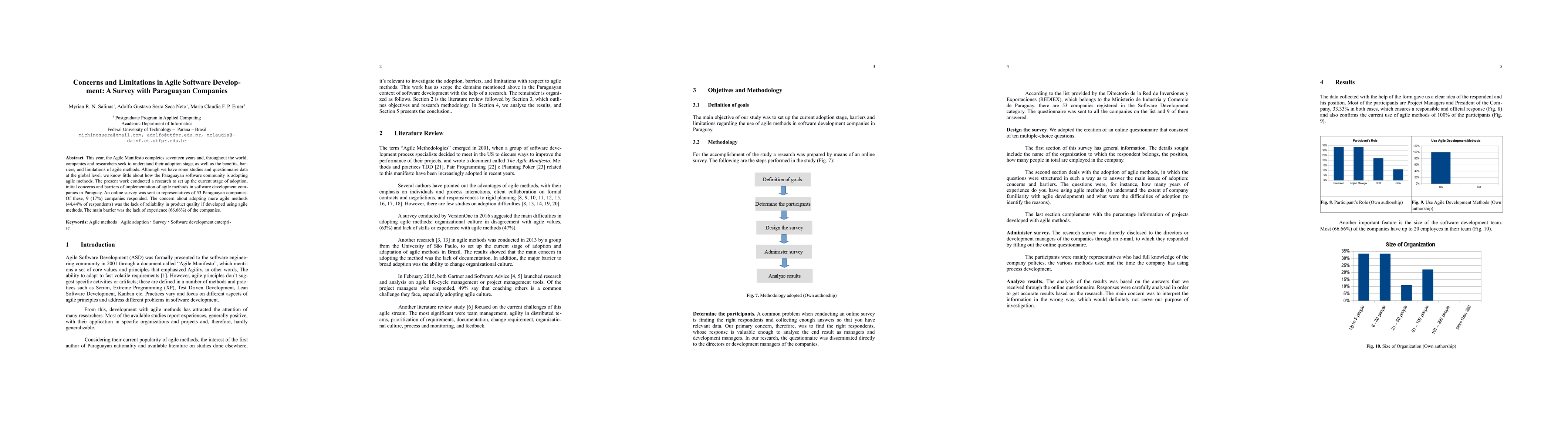 This study surveys Paraguayan software companies to assess their adoption of agile methods, finding that 17% responded, with concerns primarily focused on reliability in product quality and the main barrier being a lack of experience.