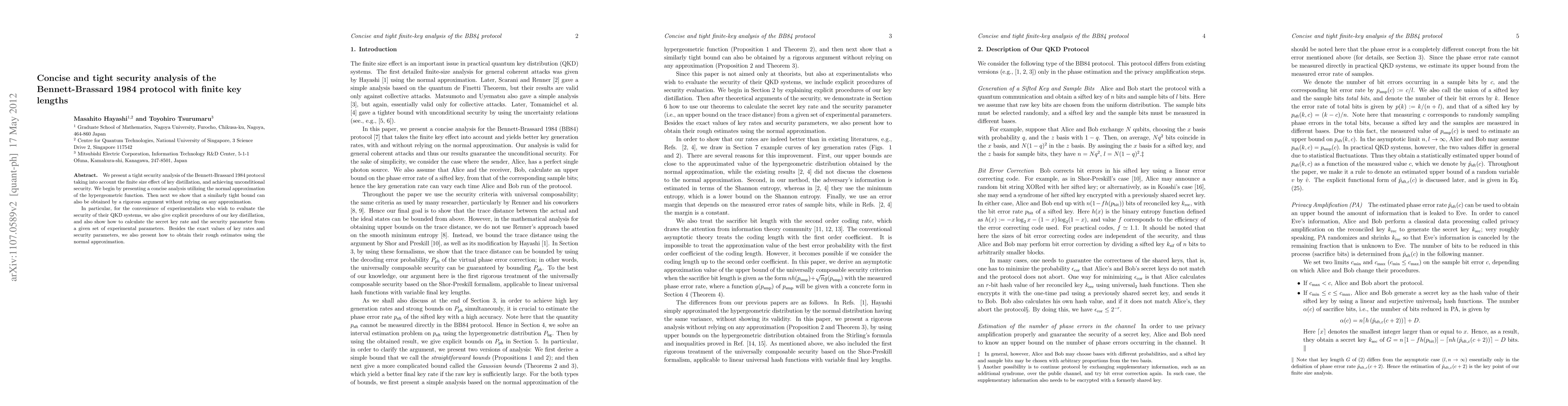 This paper provides a tight security analysis of the Bennett-Brassard 1984 quantum key distribution protocol, considering finite key length effects. It offers both an approximate method using the normal approximation of the hypergeometric function and a rigorous exact method, providing explicit procedures for evaluating security parameters and key distillation for experimentalists.